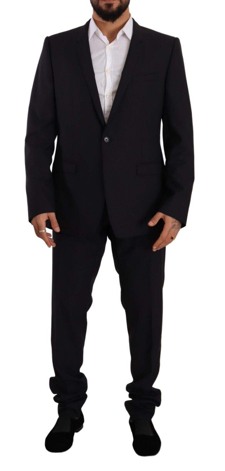 Gorgeous brand new with tags 100% Authentic Dolce & Gabbana 2 piece suit. Deconstructed blazer with notch lapels and one-button closure. The trousers feature a concealed zip and button closure, front slanted pockets, one watch pocket and two back welt pockets with buttons. Pressed pleats and unfinished hems.