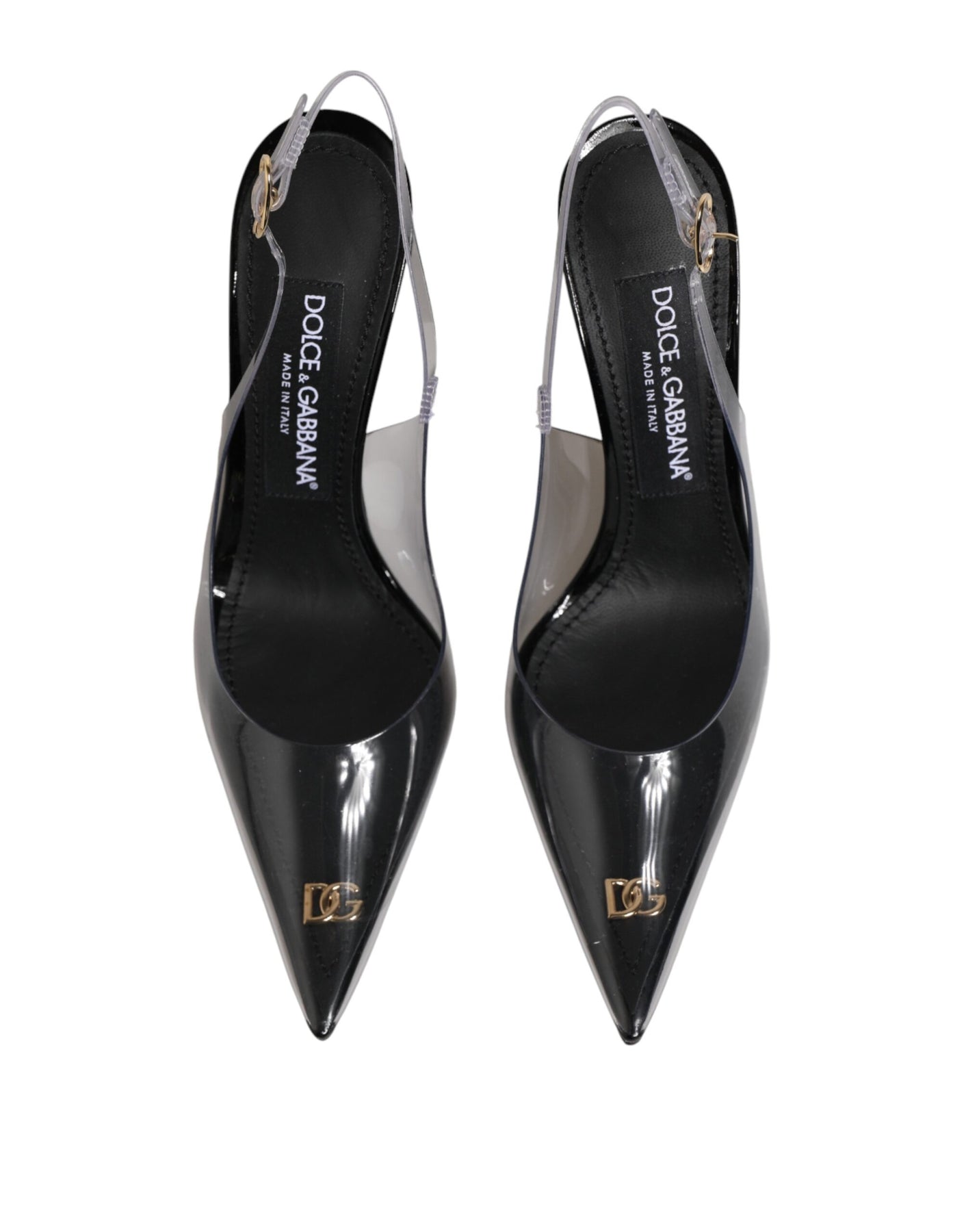 Dolce & Gabbana Black Leather Clear PVC Slingback Pumps Shoes