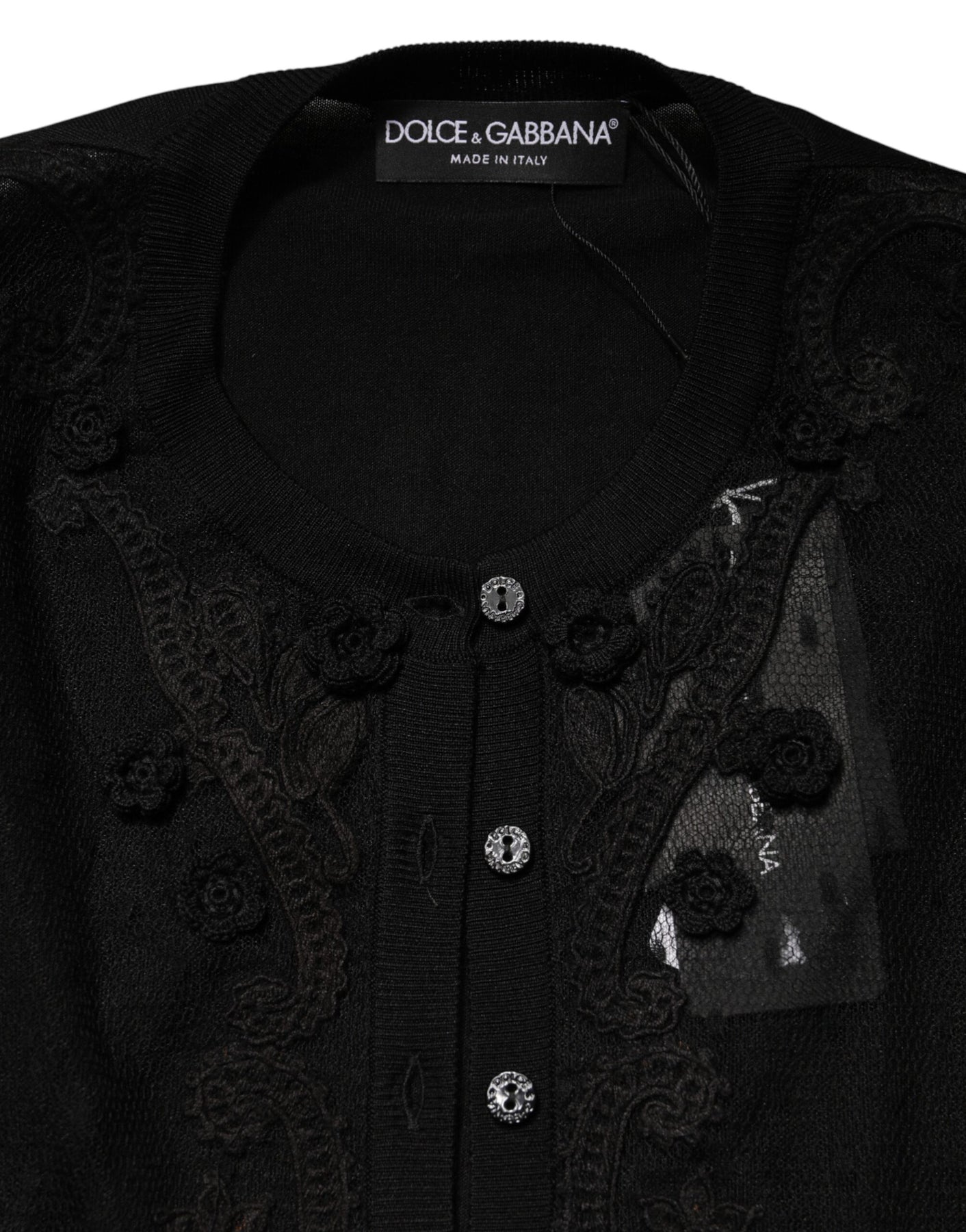 Dolce & Gabbana Black Sheer Button Down Cardigan Sweater