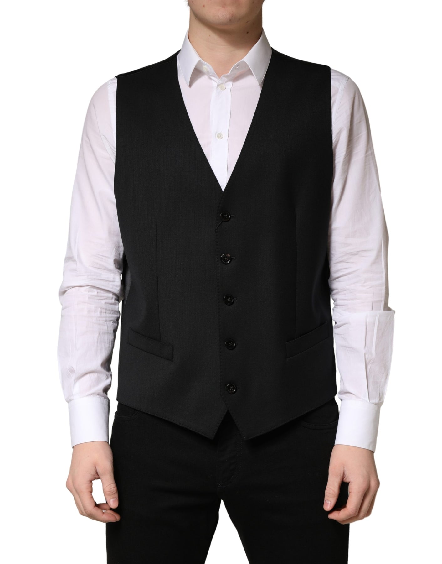 Dolce & Gabbana Black Wool Single Breasted Men Waistcoat Vest