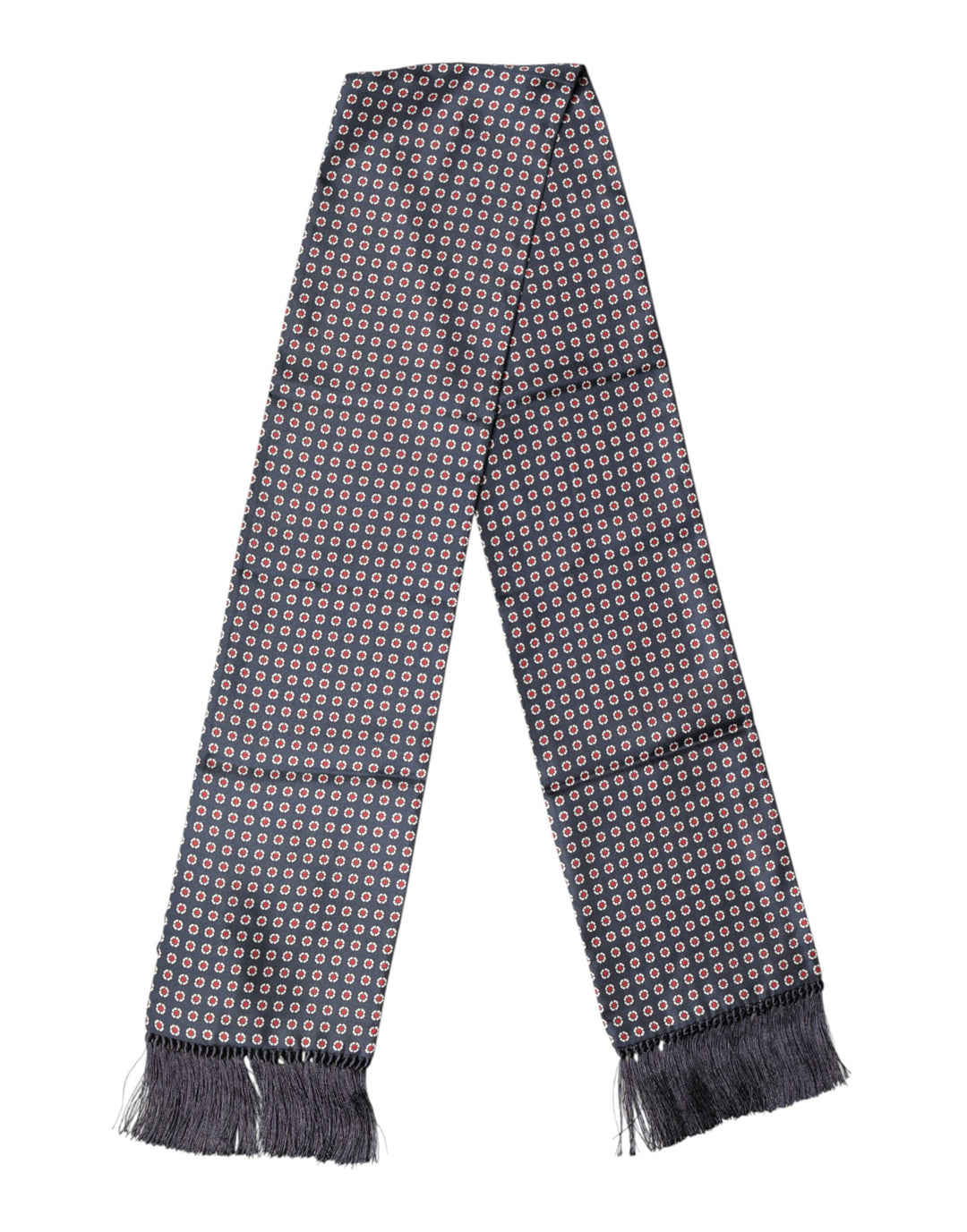 Dolce & Gabbana Gray Patterned Fringes Neck Foulard Scarf