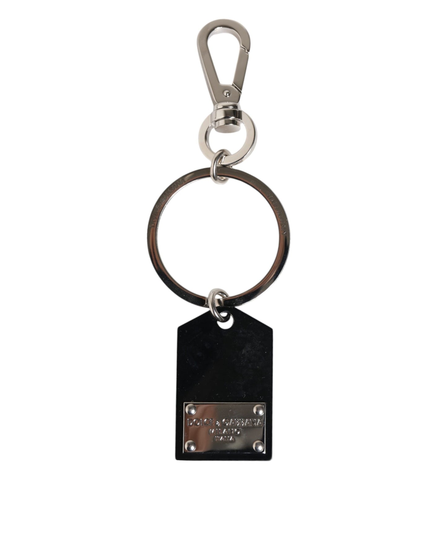 Gorgeous brand new, 100% Authentic Dolce & Gabbana keyring. This luxurious DG logo keychain holder features a sleek black sint glass plaque accented with a metal plate logo detail. A bold and stylish accessory, perfect for keeping keys secure or adding a touch of Italian elegance to bags and everyday essentials.