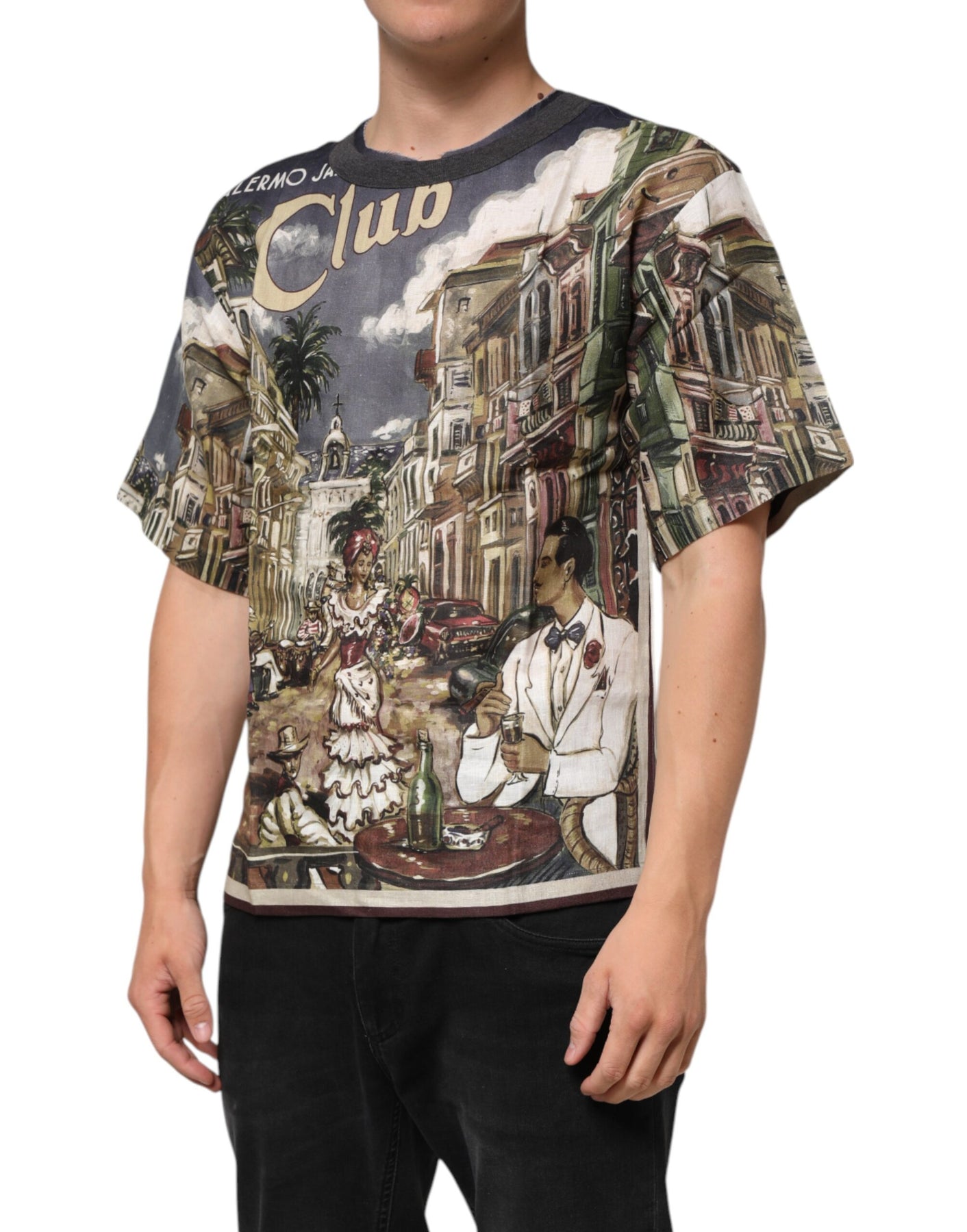 Gorgeous brand new, 100% Authentic Dolce & Gabbana t-shirt features a stylish “Palermo Jazz Club” print, crafted from breathable, high-quality linen. This men’s crew neck tee combines casual comfort with artistic flair, perfect for everyday wear with a refined touch. Finished with signature Dolce & Gabbana design details, it’s a versatile piece for the modern wardrobe.