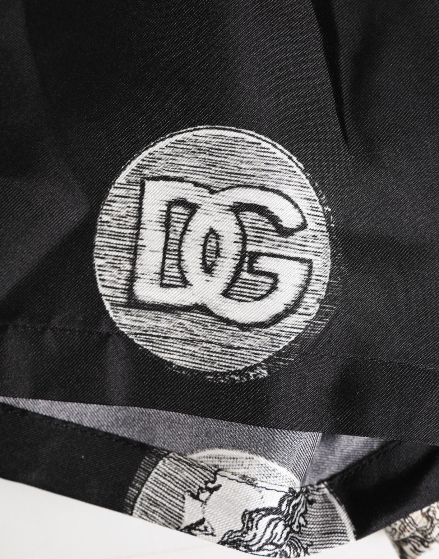 Black Silk Ancient Coin Print Boxer Short Swimwear