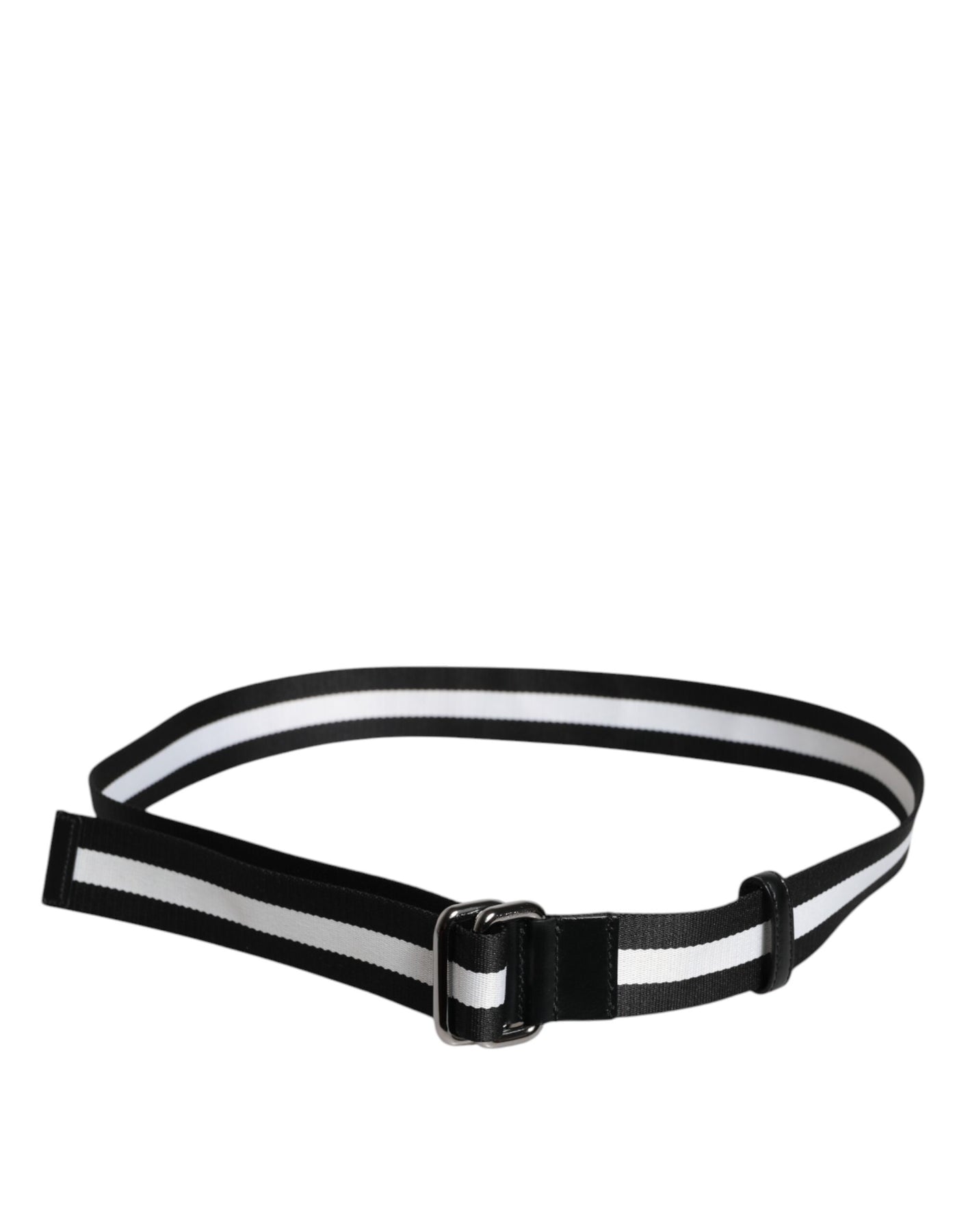 Gorgeous brand new with tags 100% Authentic Dolce & Gabbana striped nylon belt featuring contrasting logo lettering at the front and leather and metal details.