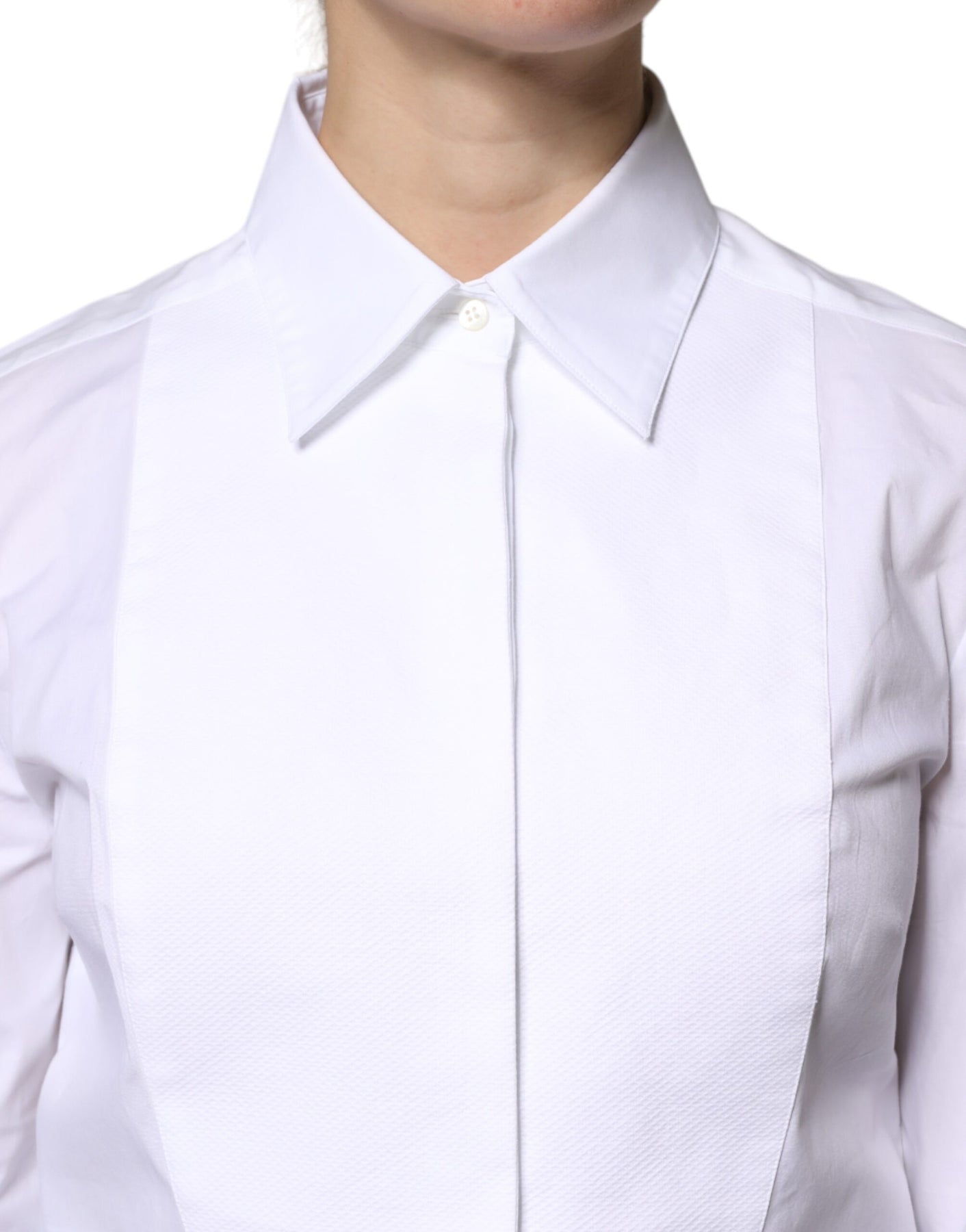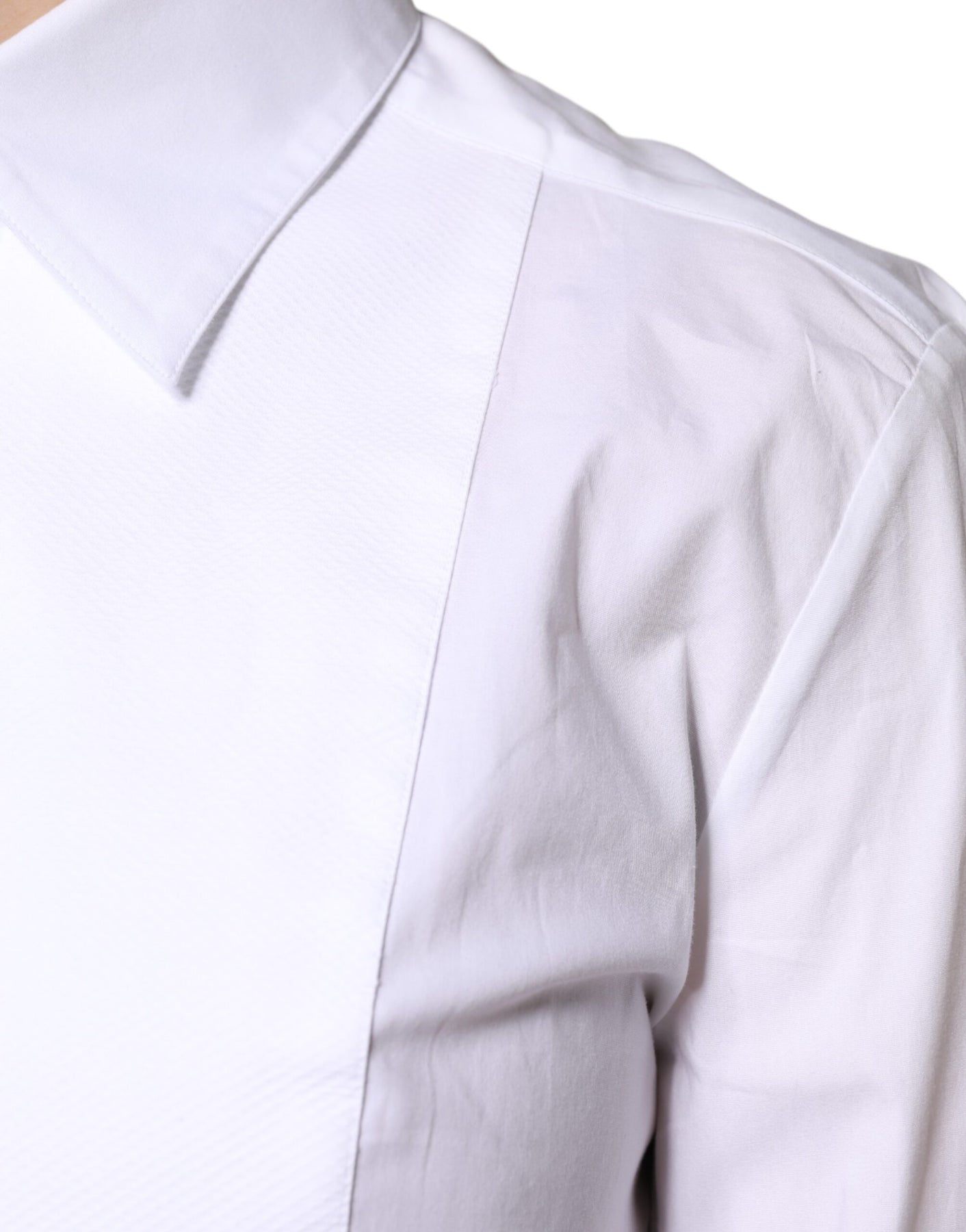 Absolutely stunning, 100% Authentic brand new Dolce & Gabbana white cotton poplin shirt featuring a bib with buttons.