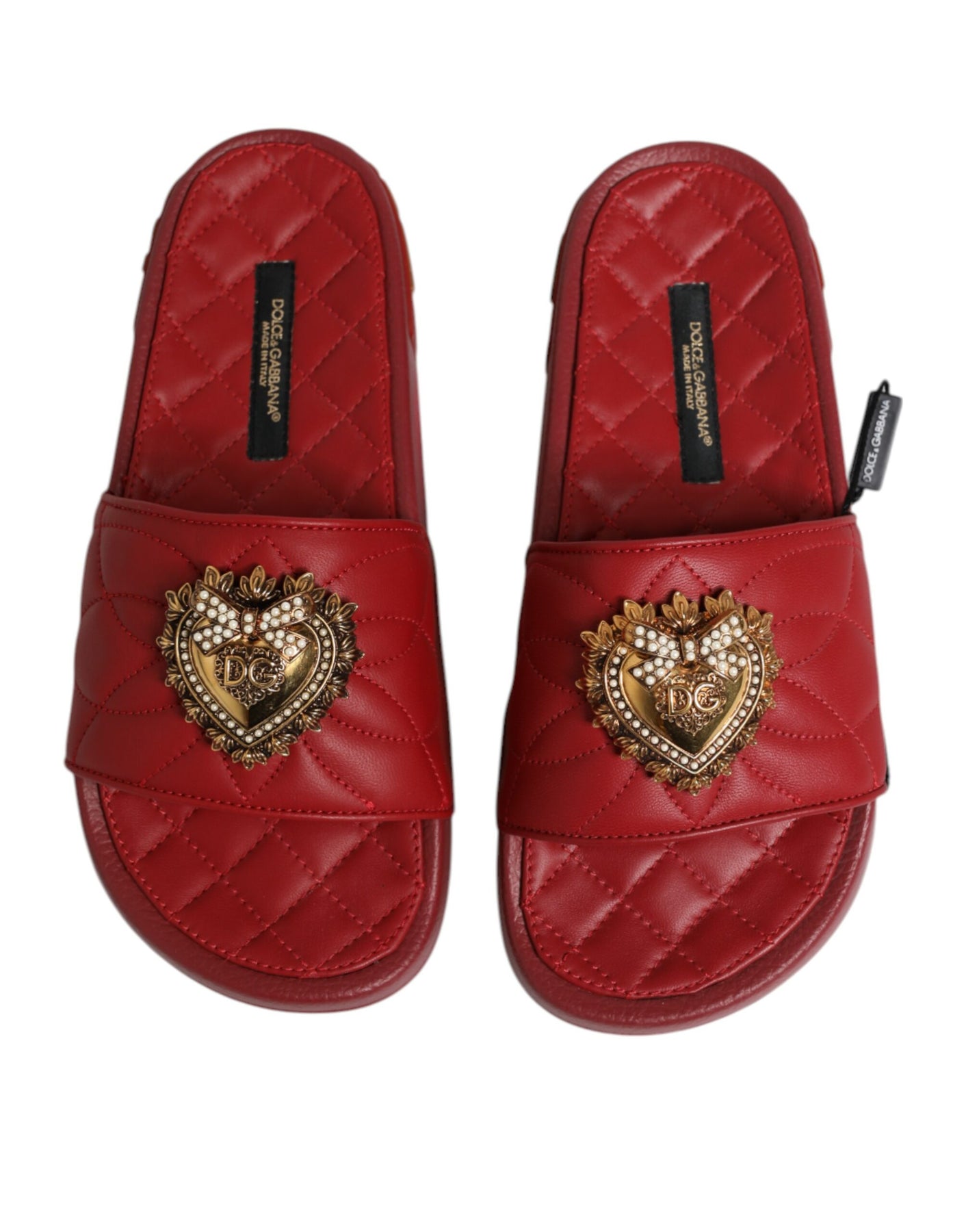 Gorgeous brand new, 100% Authentic Dolce & Gabbana luxury flat-heeled slides crafted from high-quality leather, featuring the distinctive Devotion heart motif with a metal buckle on the strap.