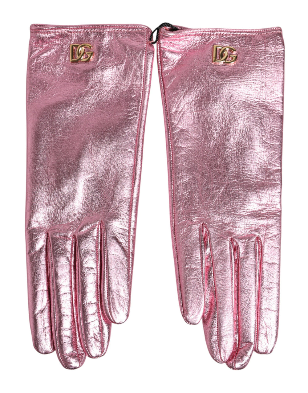Dolce & Gabbana Pink Leather DG Logo Wrist Length Mitten Gloves