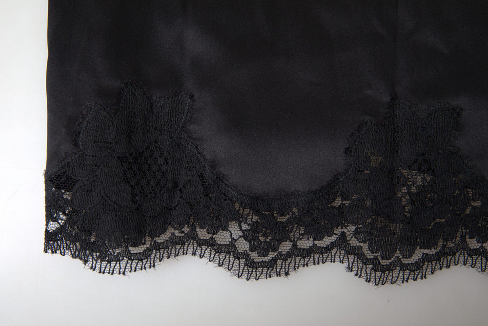 Dolce & Gabbana Black Silk Floral Lace Lingerie Top