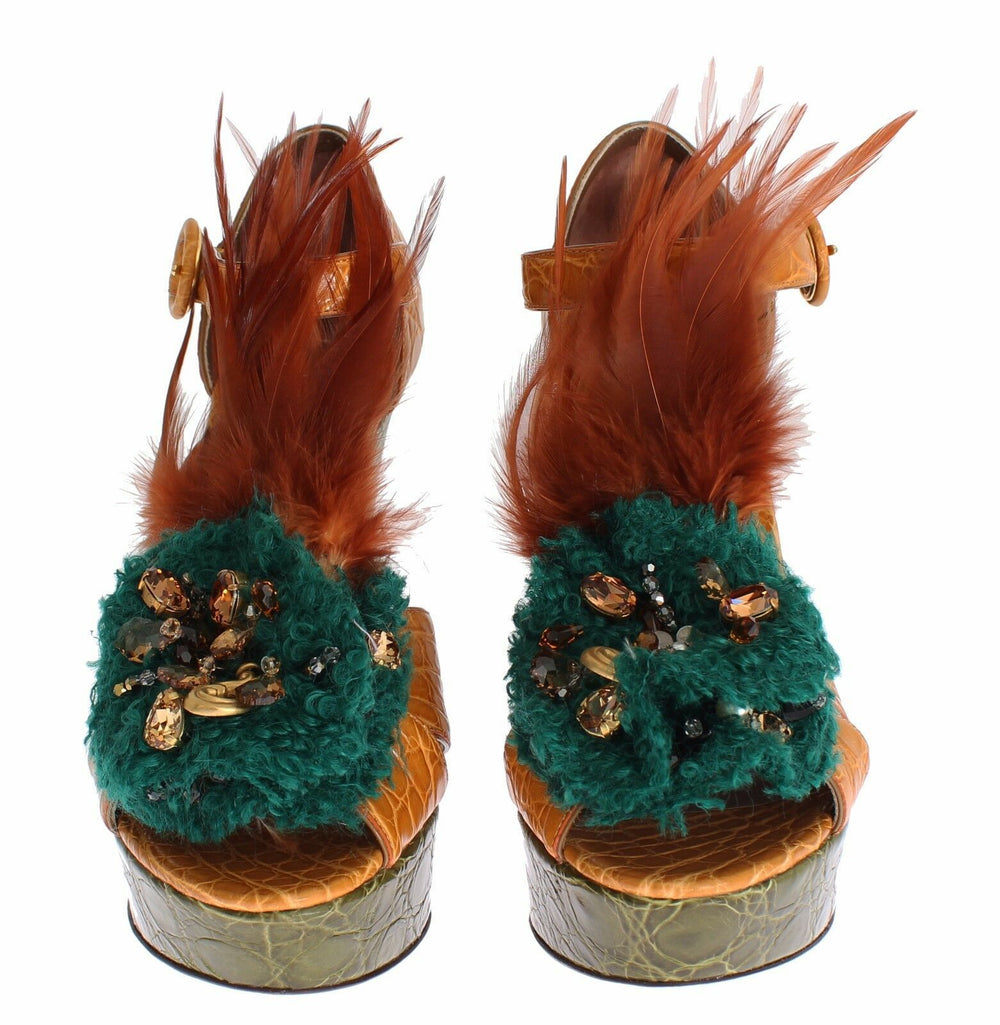 Green Exotic Leather Ankle Strap Heels Sandals Shoes
