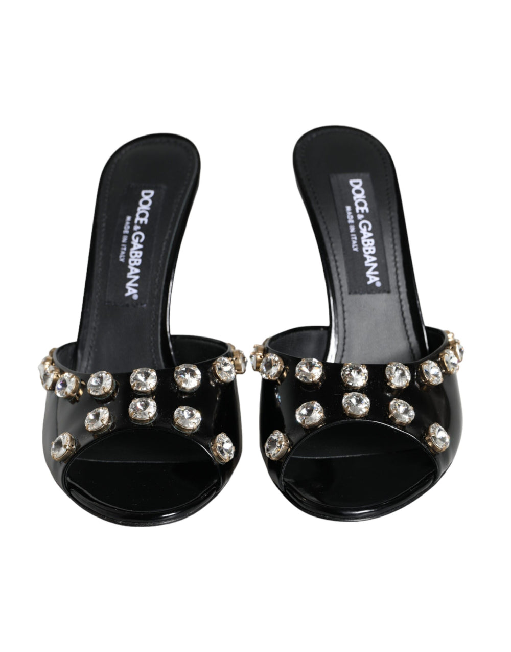 Black Leather Crystal Ankle Strap Sandals Shoes