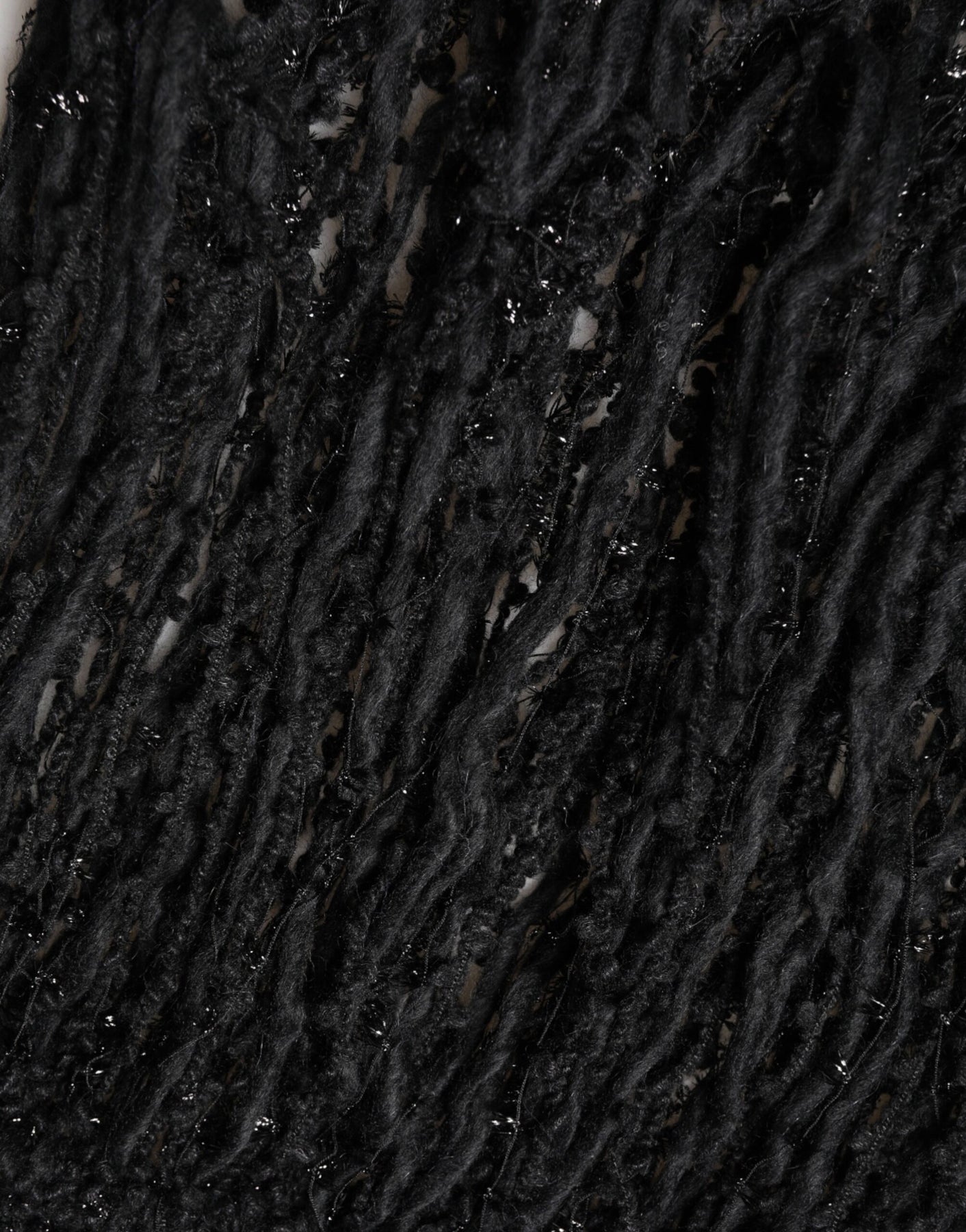 black cashmere knit scarf, featuring delicate fringe detailing for added texture and style. Soft, warm, and luxurious, it drapes effortlessly as a shawl or neck wrap. Perfect for layering over casual or formal outfits, adding timeless sophistication and Italian craftsmanship to cold-weather looks.