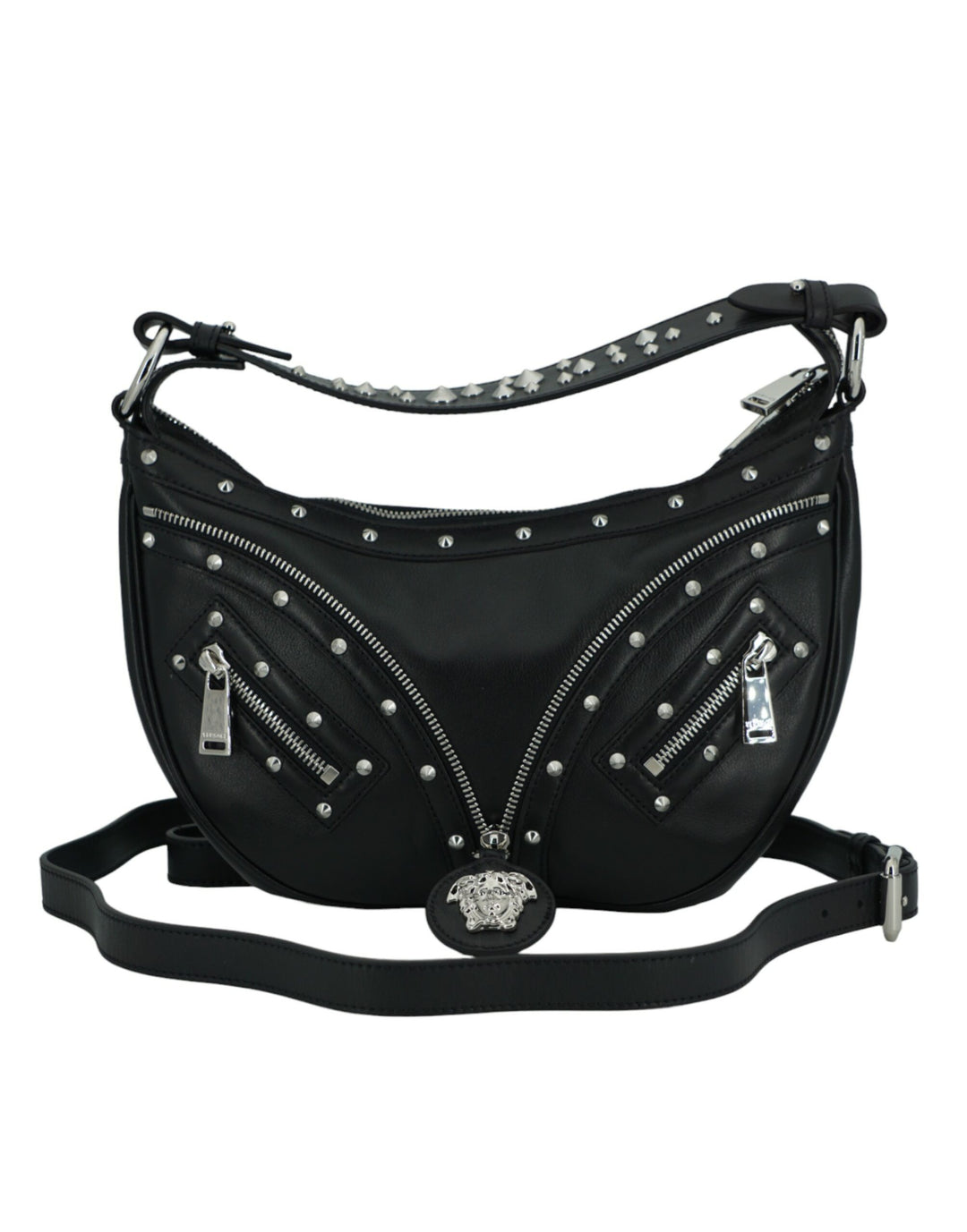 Versace Black Calf Leather Small Hobo Shoulder Bag