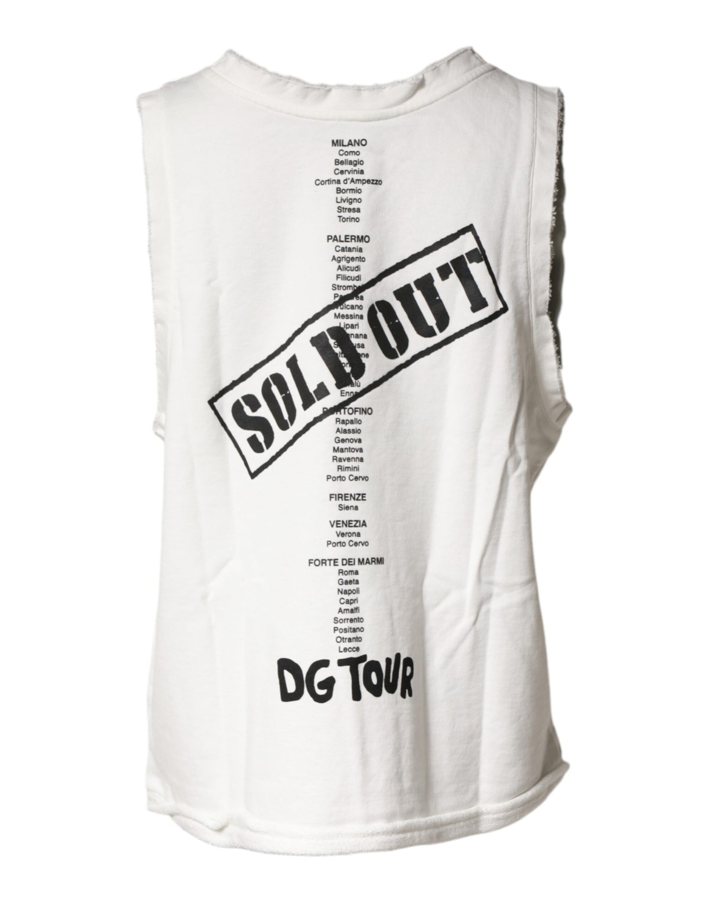 sleeveless T-shirt showcases a bold graphic print on soft white cotton. Designed with a crew neckline and a relaxed fit, it delivers a modern streetwear edge with the brand’s signature Italian flair.