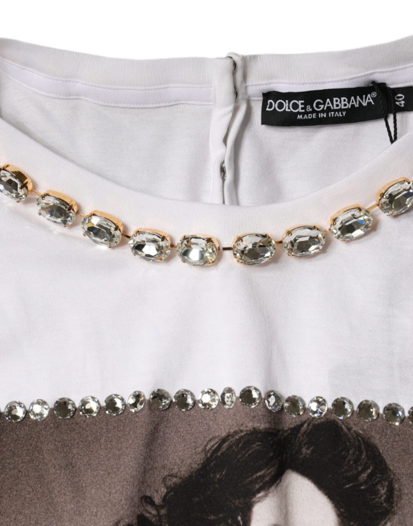 Gorgeous brand new with tags, 100% Authentic Dolce & Gabbana t-shirt featuring cotton, J.Lo photograph print, crystal embellishment, crew neck, short sleeves and straight hem.