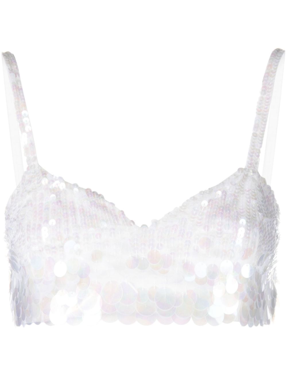 P.A.R.O.S.H.'s crop top is rendered in light pink. The piece is characterised by the all over sequins with a dazzling iridescent effect.