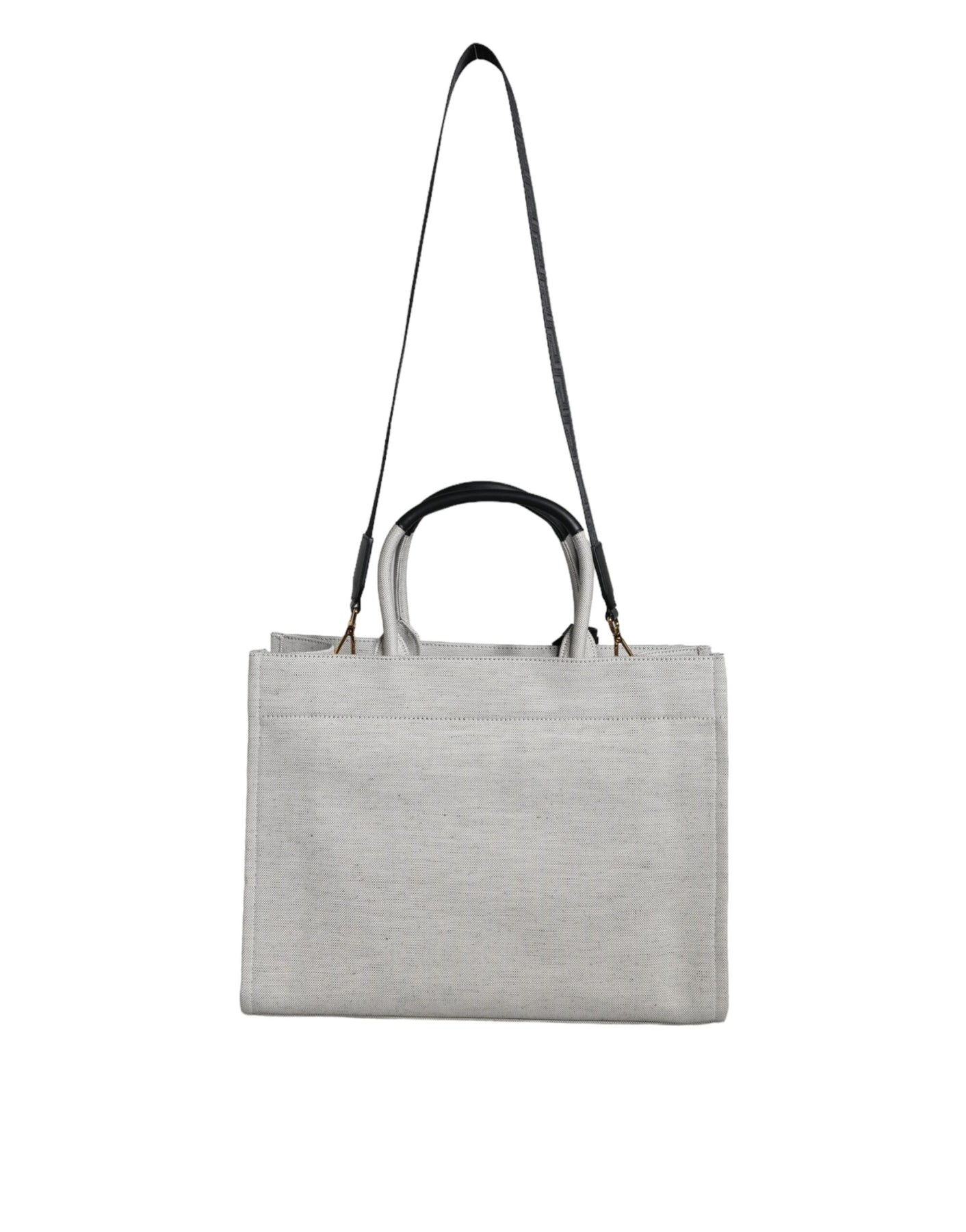 White Top Handle Canvas Leather Logo Crossbody Tote Bag