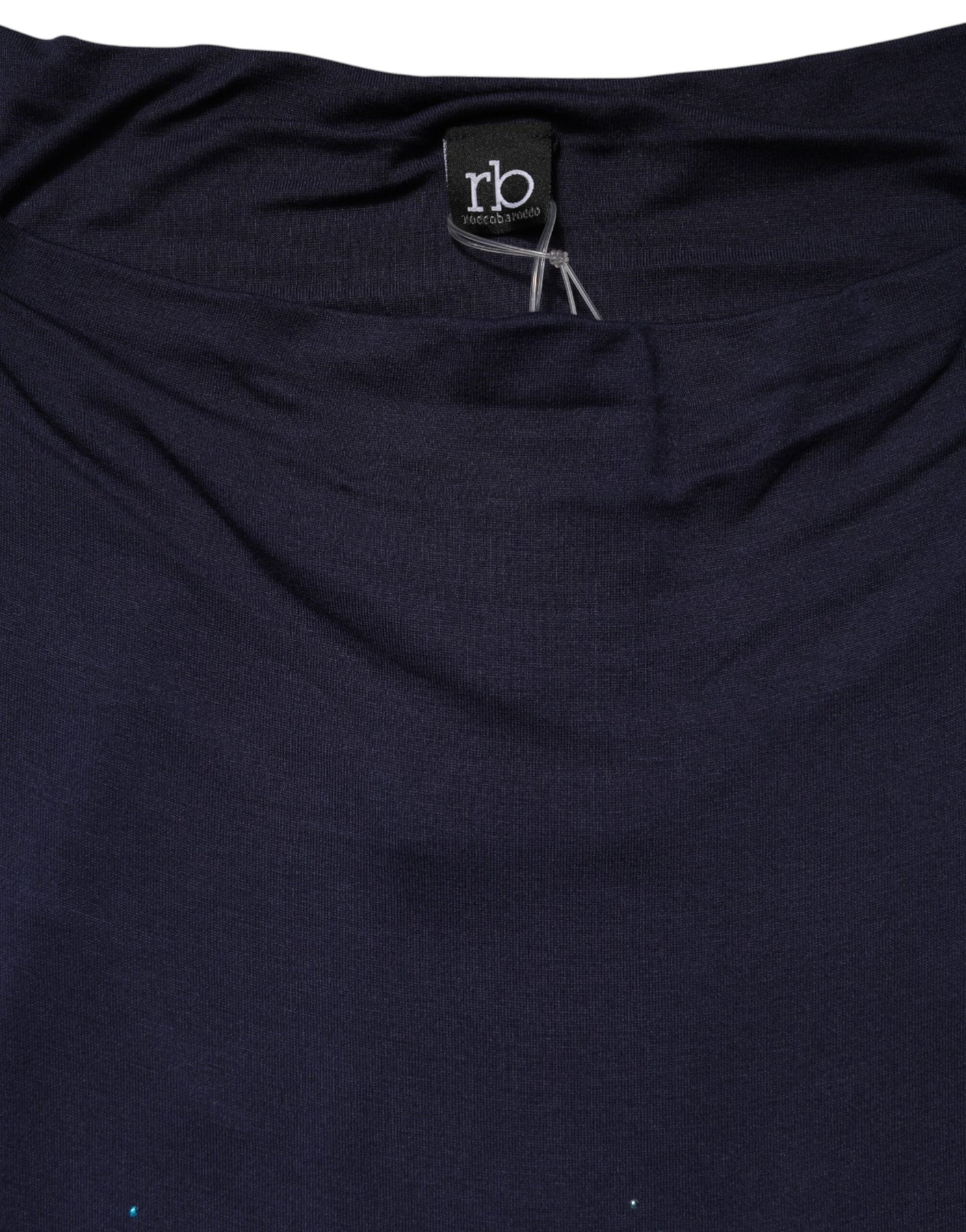 Roccobarocco Blue Viscose Embellished Off Shoulder Mini Dress