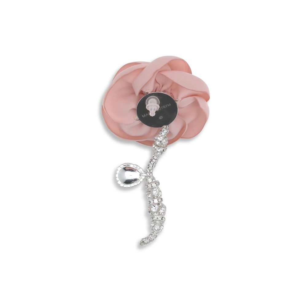 The Crystal Rose Drop single Earring by Magda Butrym is a romantic, statement-making piece featuring a lifelike blush-pink rose crafted from soft-touch material. The bloom is paired with a gracefully curved rhinestone stem and finished with a sparkling teardrop crystal that catches the light. Elegant and poetic, it adds a refined, feminine touch to evening outfits or special-occasion looks.