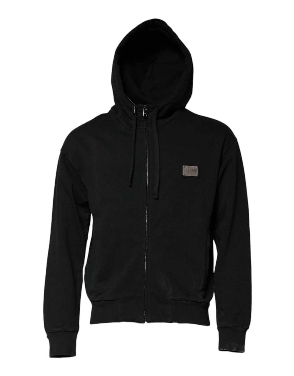 Black Logo Full Zip Hooded Men Sweatshirt Sweater