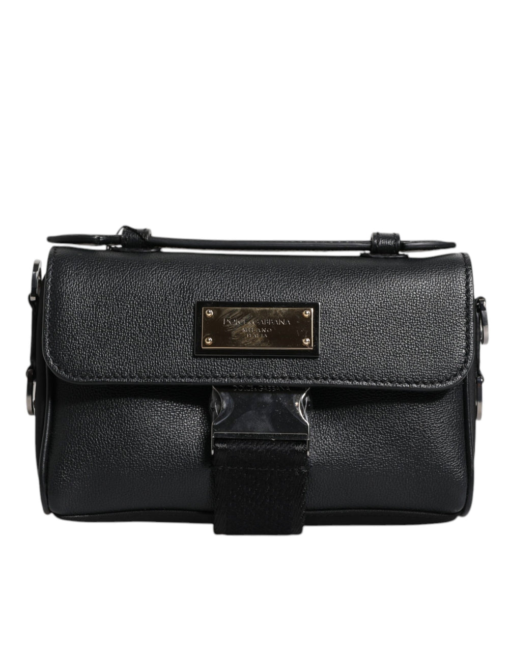 Black Logo Plaque Leather Buckled Shoulder Crossbody Bag