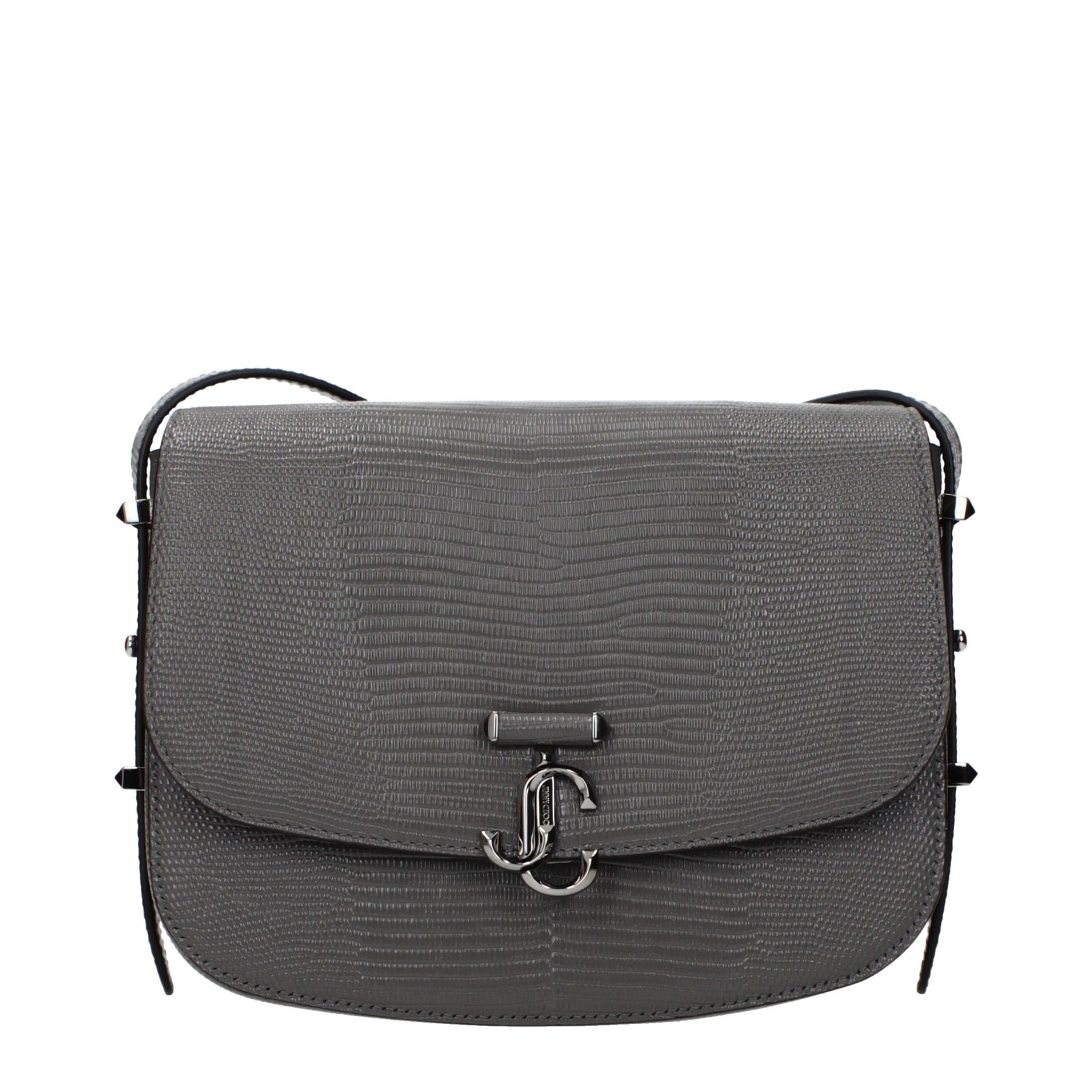 The product with MPN JCBCROSSBODYMOASSTORMGUNMETAL and code F85737 leather in gray is a crossbody bags designed by Jimmy Choo. It has features like front logo, adjustable shoulder.