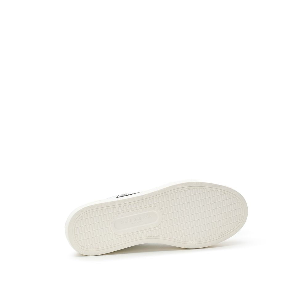 Dolce & Gabbana DNA Bordeaux and Beige Low-Top Sneakers. Beige leather with burgundy suede inserts, burgundy lace-up front, black leather tongue with contrasting logo appliqué, and a logo appliqué on the back. Rubber detailing on the outsole on the toe and back.