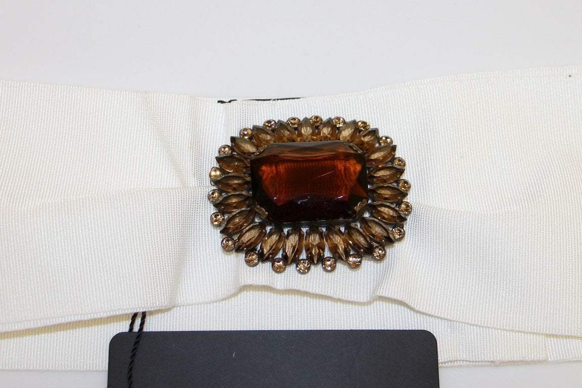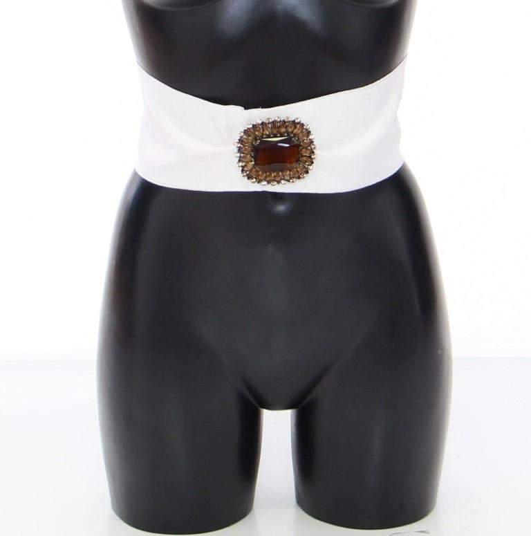 Stunning unique belt from runway collection! Brass and stone embellished decoration on the front.