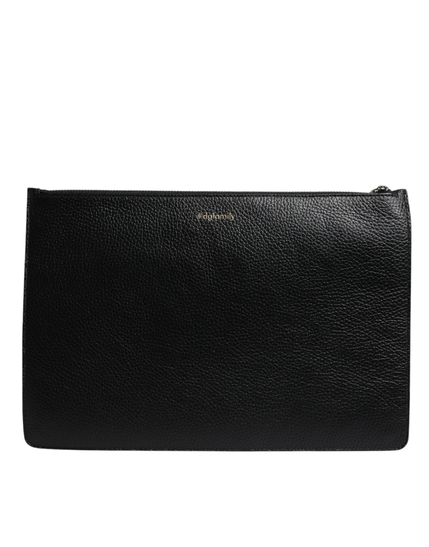 Absolutely stunning, 100% Authentic, brand new with tags Dolce & Gabbana pebbled leather pouch in black. Signature multicolor graphic leather appliques featuring stud detailing at face. Logo applique with stud detailing at back face. Zip closure. Tonal textile lining. Gold-tone and silver-tone hardware. Tonal stitching.