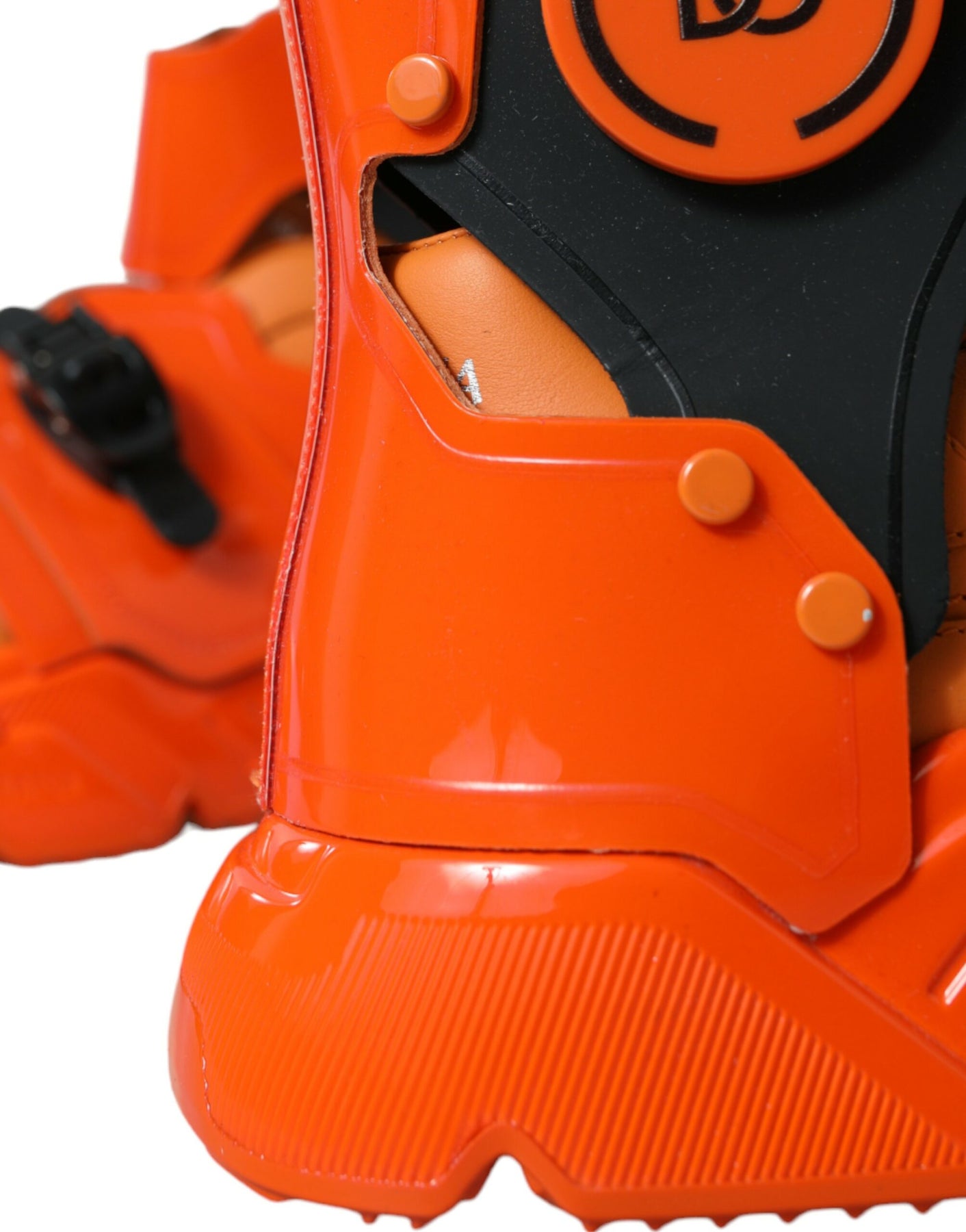 Gorgeous brand new with tags, 100% Authentic Dolce & Gabbana high top sneakers featuring logo patch to the side, multi-panel design, round toe, front buckle fastening, oversize tongue, branded insole, pull-tab at the heel and ridged rubber sole .