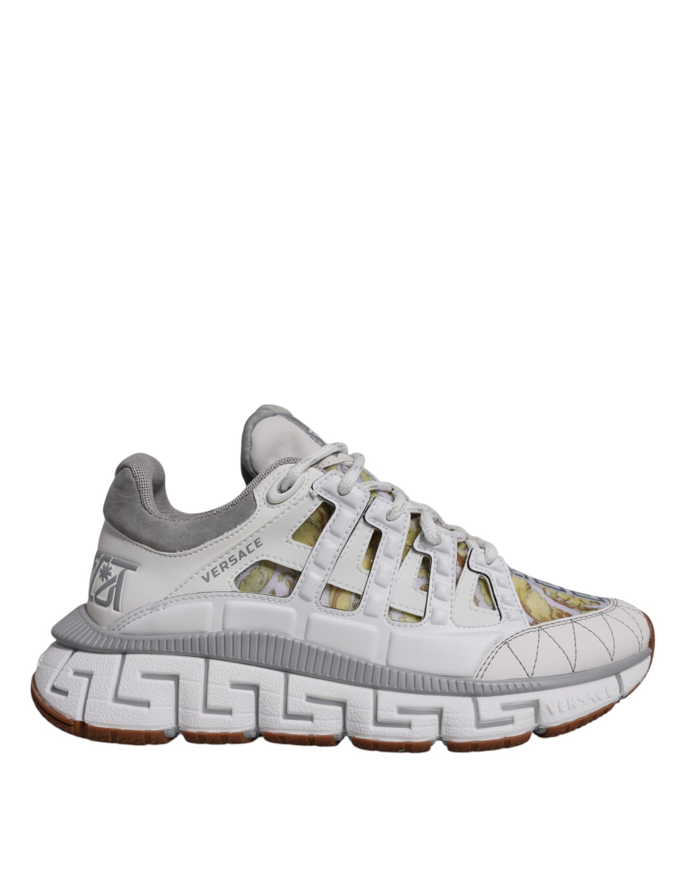 Gorgeous brand new with tags, 100% Authentic VERSACE Barocco Trigreca sneakers. Harnessing their signature aesthetic, these timeless shoes feature a distinctive three-dimensional Greca pattern.