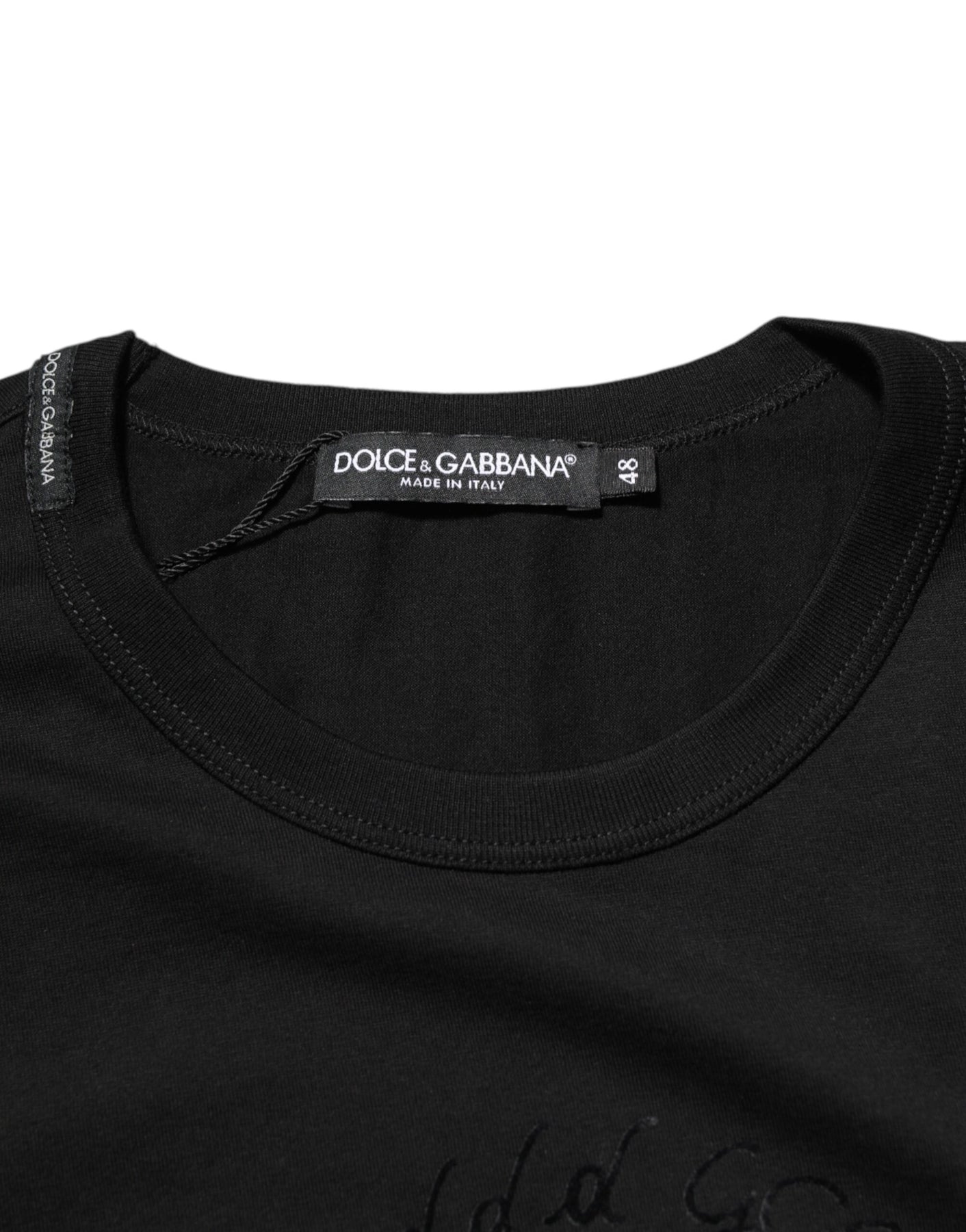 Gorgeous brand new, 100% Authentic Dolce & Gabbana men’s t-shirt.This sleek black crew neck t-shirt is crafted from pure cotton and features a unique velvet-style logo print design on the chest with multiple D&G script variations for a bold, modern look. A versatile wardrobe essential with a luxury finish.
