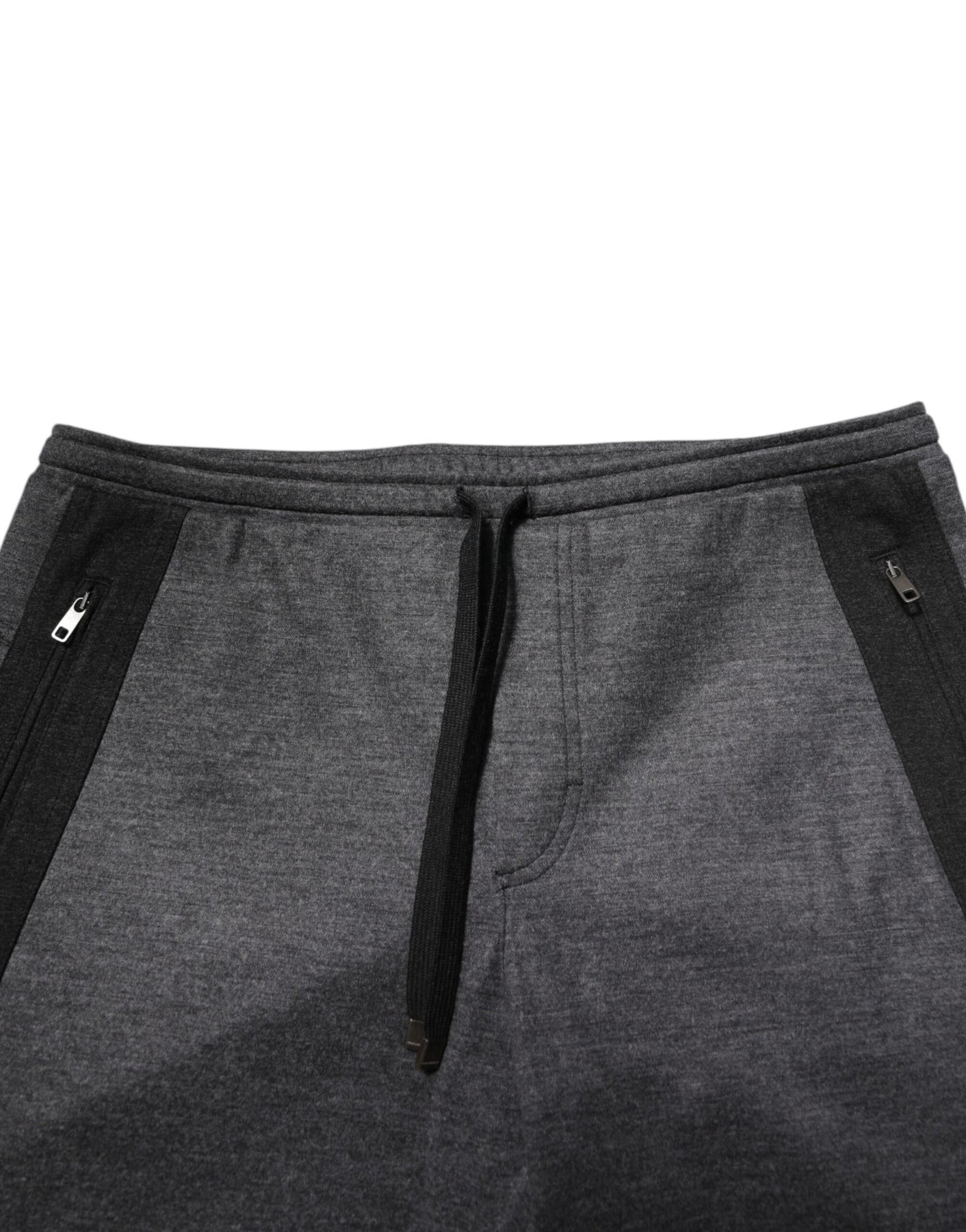 These gray-black jogger sweatpants are crafted from a soft wool blend, offering both comfort and sophistication. Featuring a modern tapered fit with an elastic waistband, they fuse luxury tailoring with relaxed, sporty style — perfect for upscale casual wear.