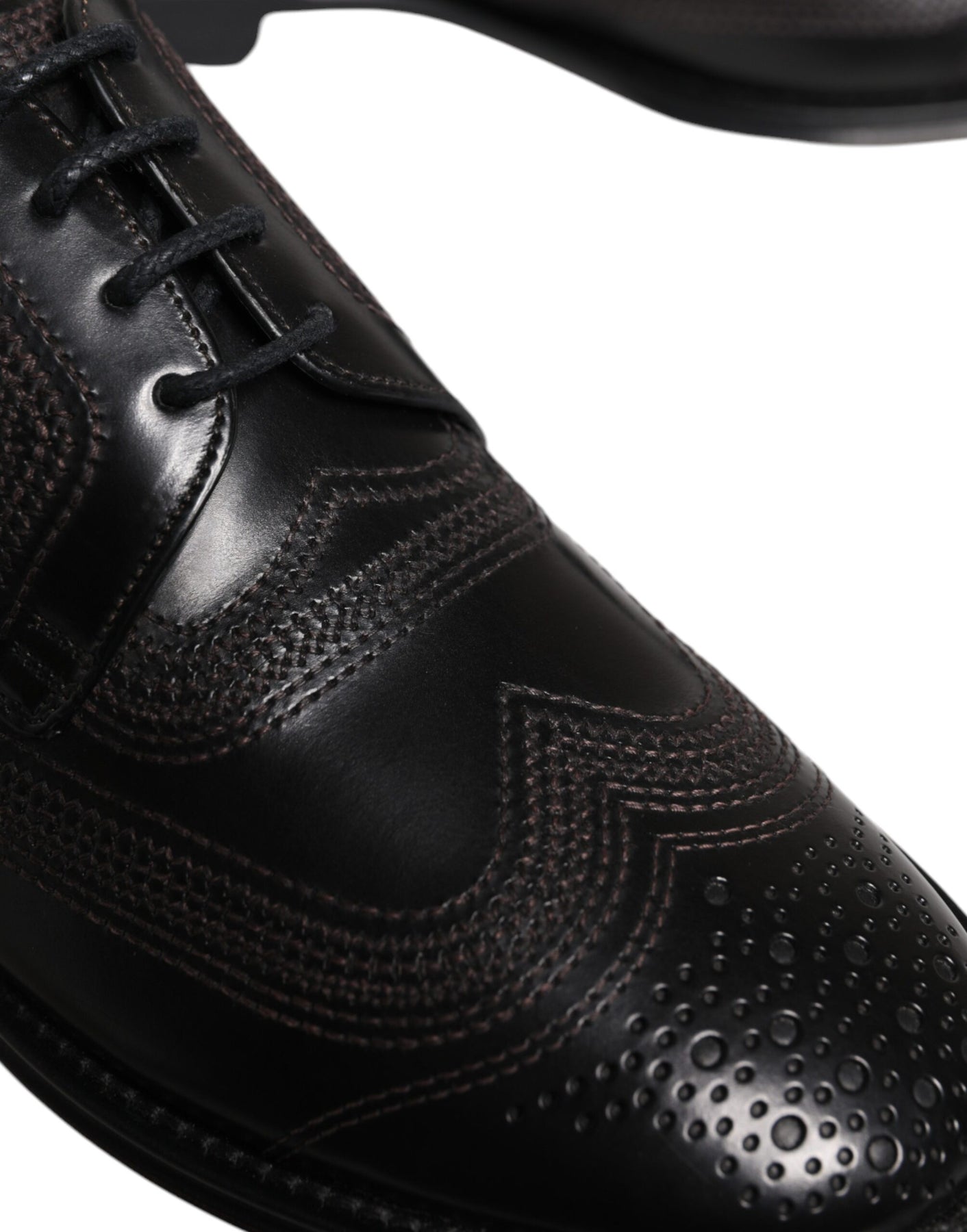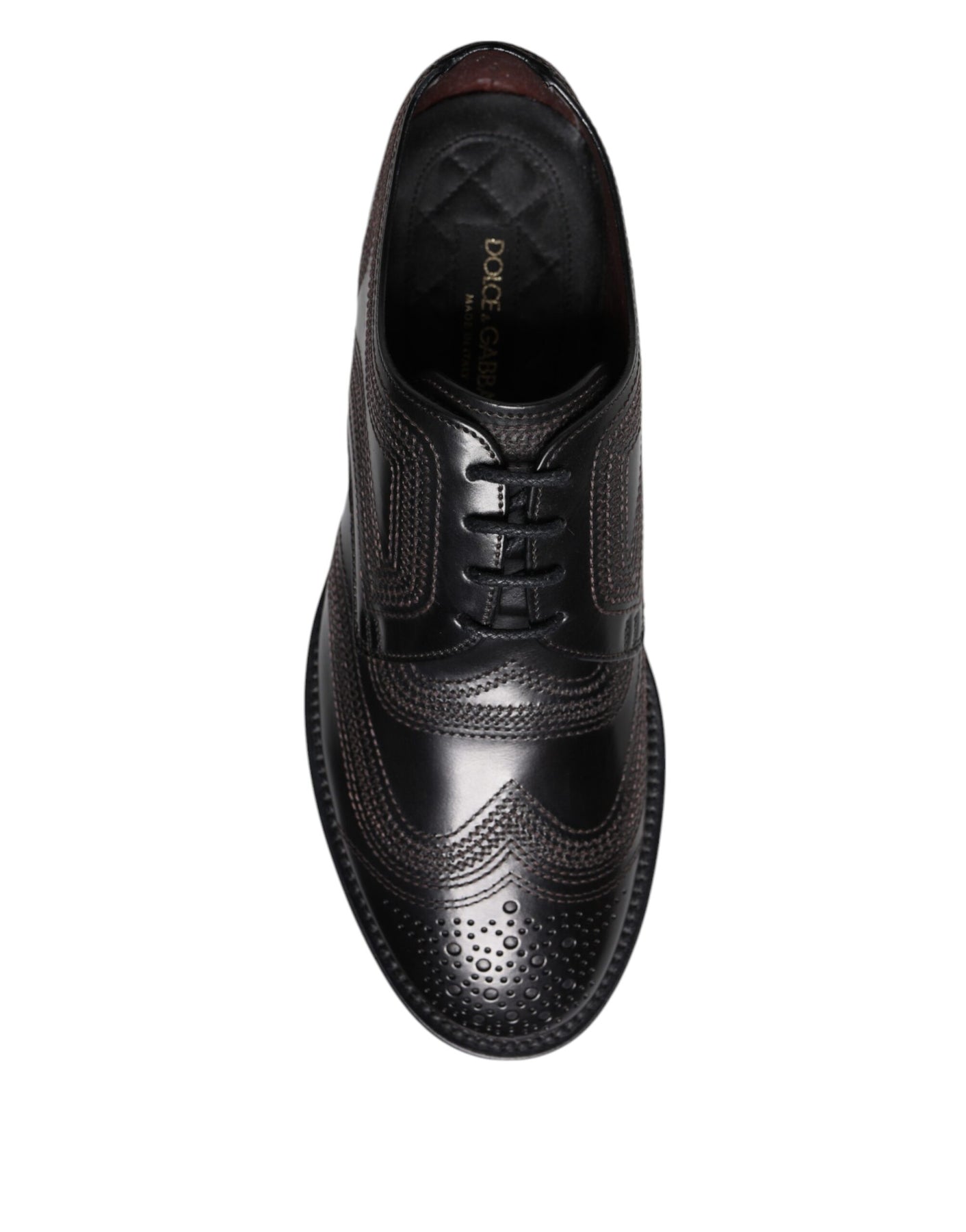 Gorgeous brand new, 100% Authentic Dolce & Gabbana embroidered MARSALA calfskin derby shoes in black.