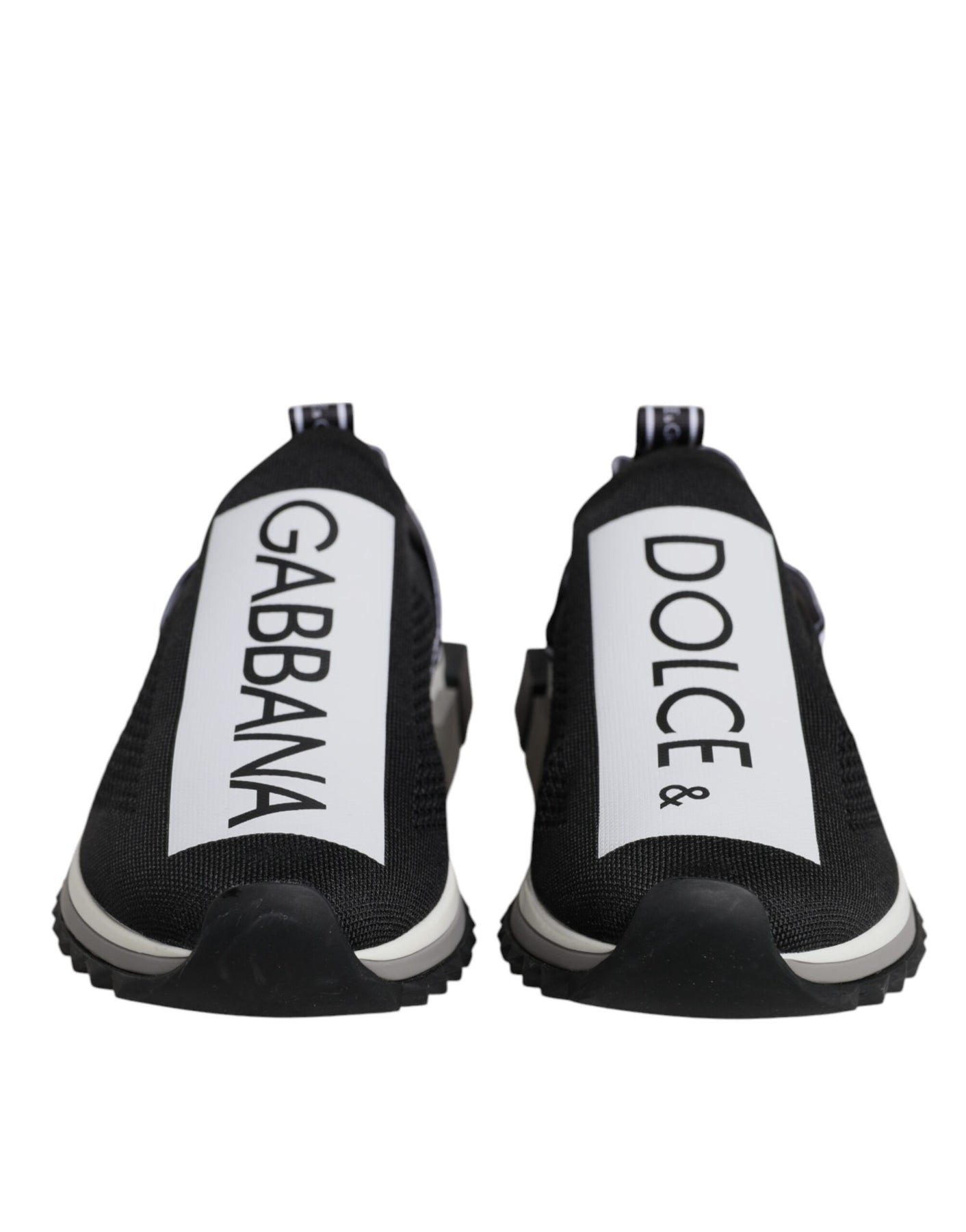 Gorgeous brand new with tags, 100% Authentic Dolce & Gabbana Black and white ‘Sorrento’ sock sneakers. Decorated with a logo print in white and black. Fabric pull strap sewn-in at the back. Black decorative rubber sole.