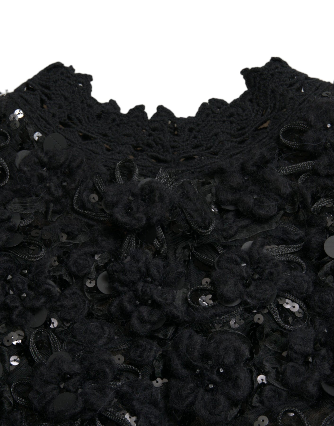Dolce & Gabbana Black Sequined Embellished Pullover Sweater