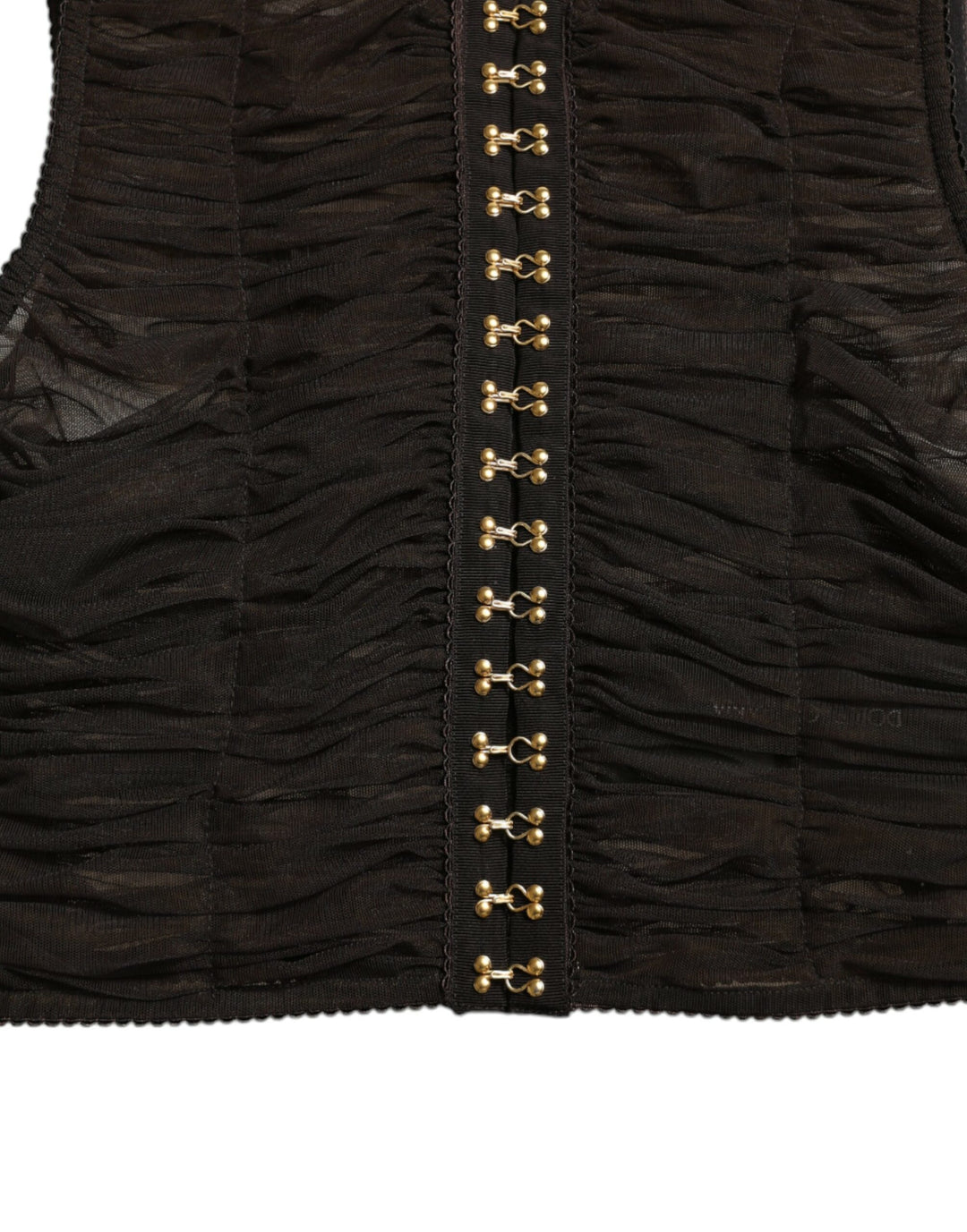 Dolce & Gabbana Brown Embellished Nylon Stretch Cropped Top