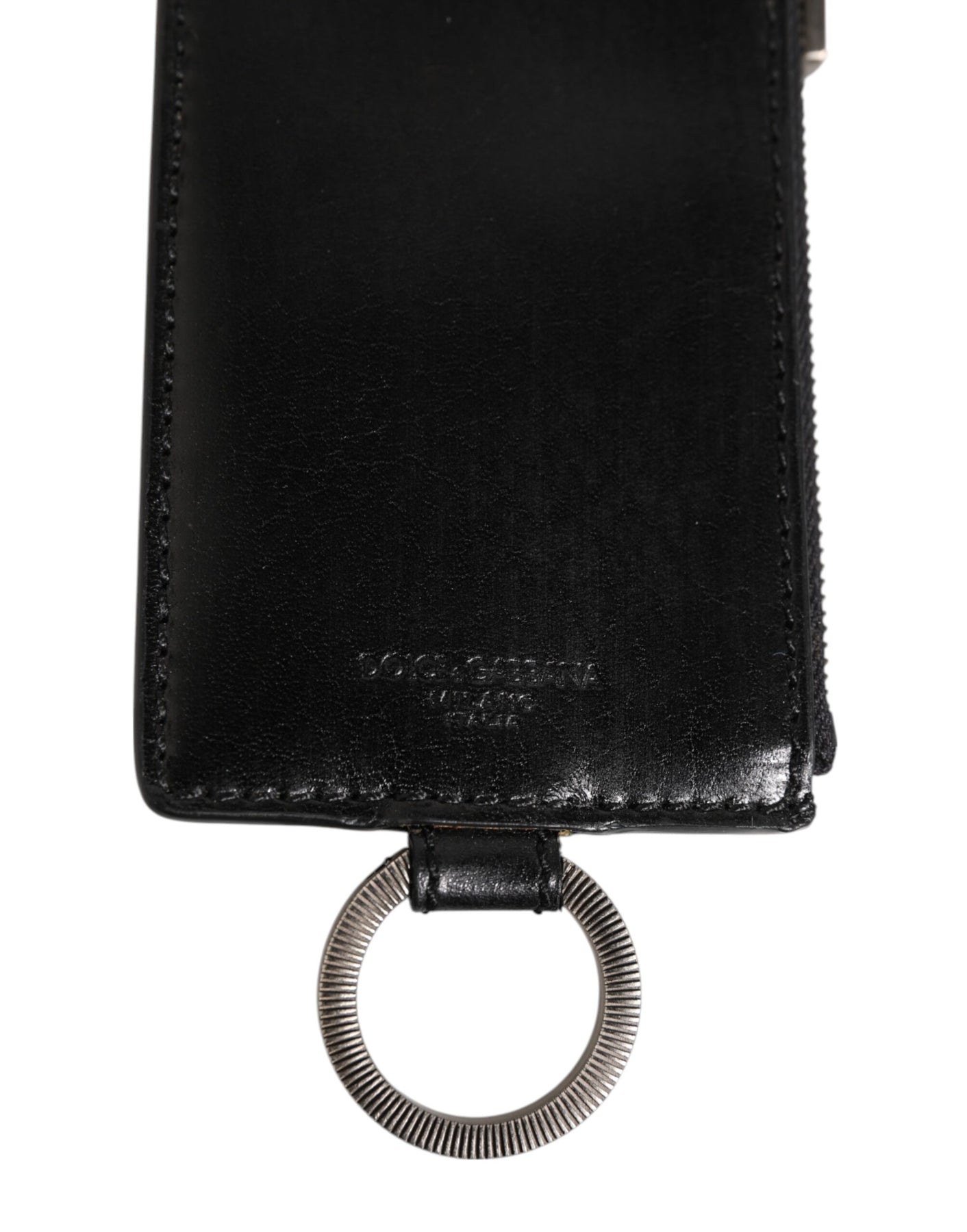 Absolutely stunning, 100% Authentic brand new Dolce & Gabbana black leather lanyard cardholder featuring logo-embossed patch to the rear, side zip fastening, card slots and ring fastening.