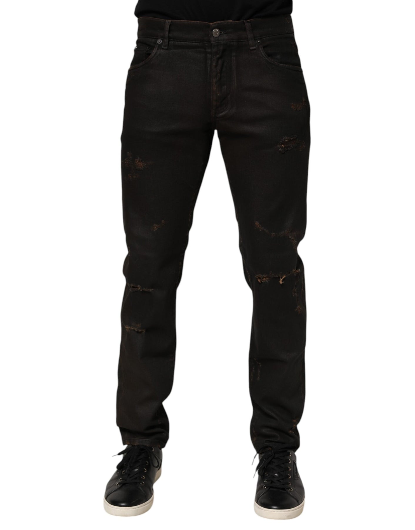Gorgeous, brand new 100% Authentic Dolce & Gabbana tattered skinny jeans, tailored from premium cotton for a sleek and comfortable fit. Featuring a classic five-pocket design, zip fly with button closure, and signature brand detailing, these jeans deliver a modern, versatile look perfect for both casual and smart-casual outfits. Designed for the contemporary man who values style and quality.