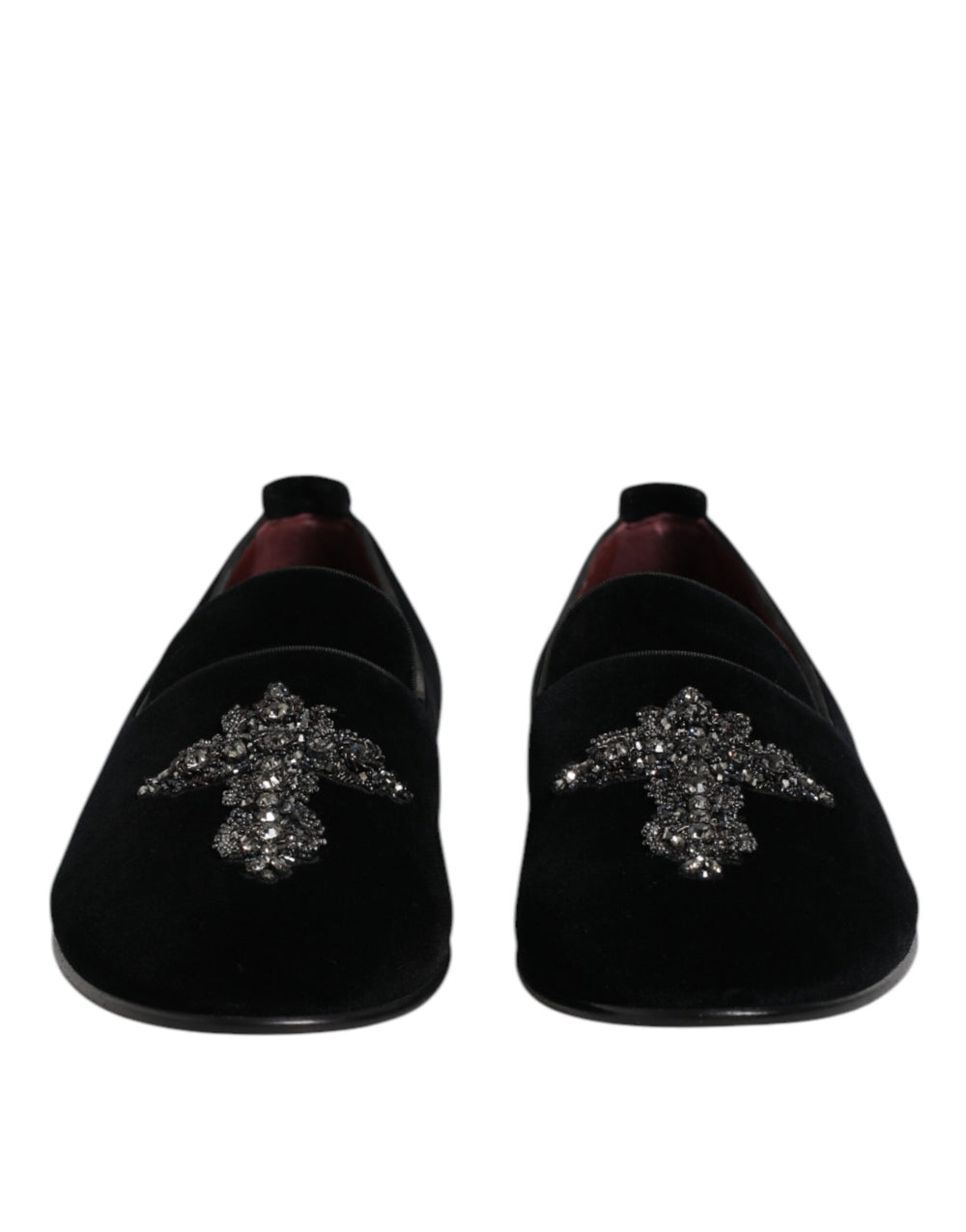 Black DG Crown Embroidery Loafers Slip On Shoes