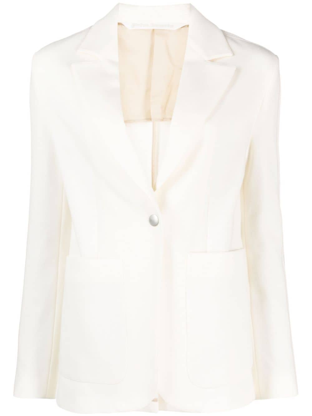 Palm Angels ventures into formal wear with this off-white blazer. Its structured silhouette is designed with traditional details - note the notched lapels, single-breasted button fastening and front patch pockets.