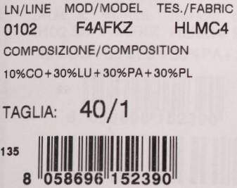 Material: 30% lurex, 30% polyester, 30% nylon, 10% cotton