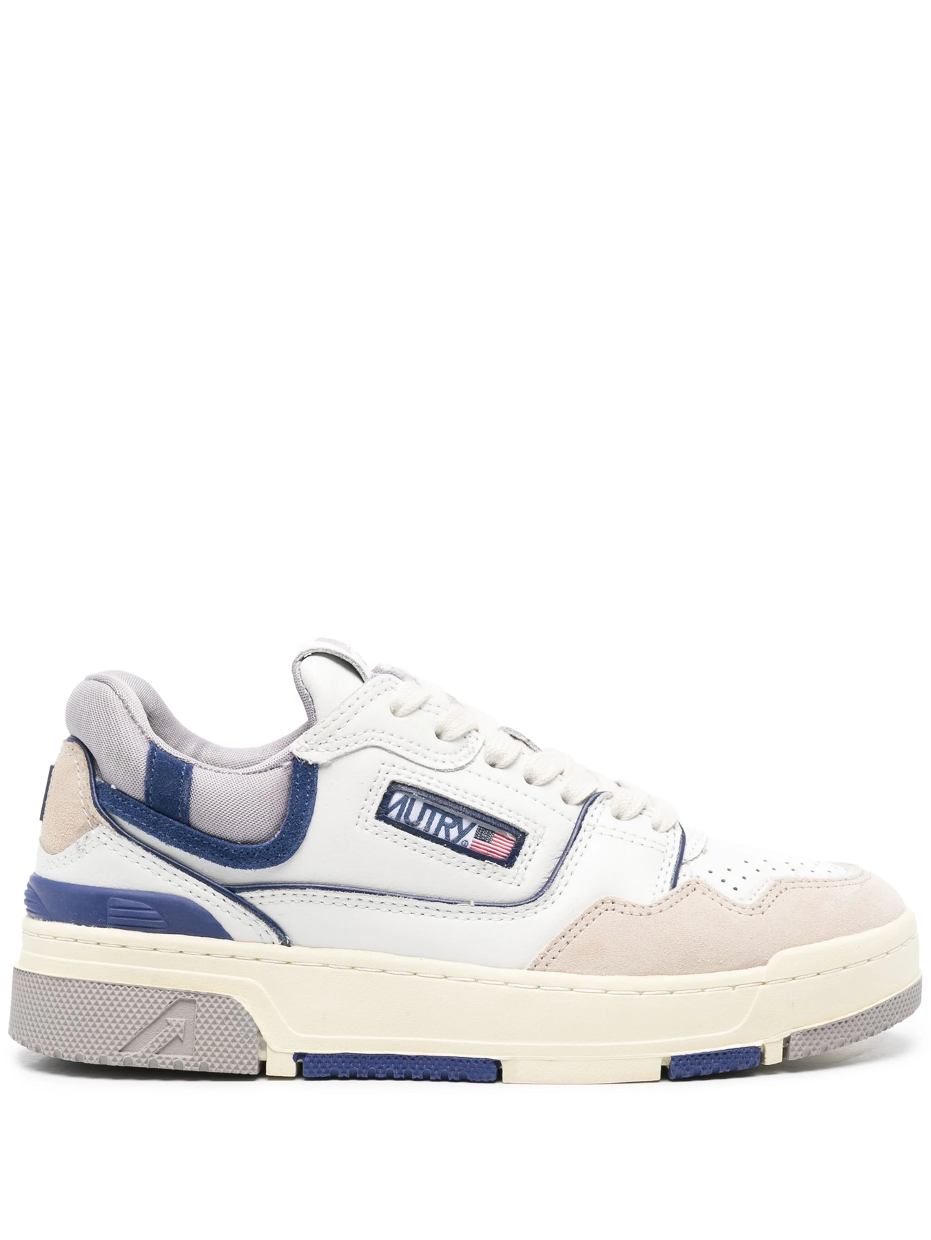 Drawing inspiration from vintage basketball styles, Autry's CLC sneakers feature a supportive, panelled silhouette. Crafted from leather, suede and denim, this white pair is highlighted with light blue and purple accents. Signature branding adorns the sides, heel counter and tongue.