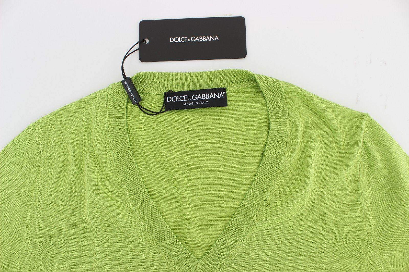 Dolce & Gabbana Green Wool V-neck Pullover Sweater Top