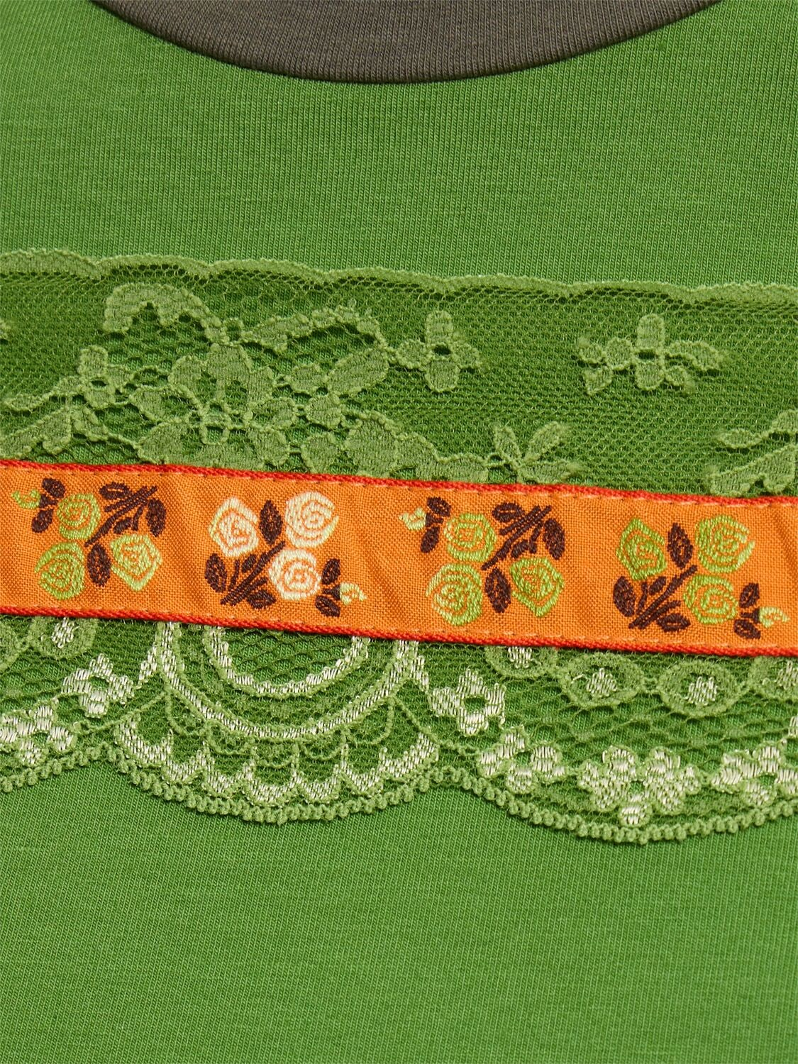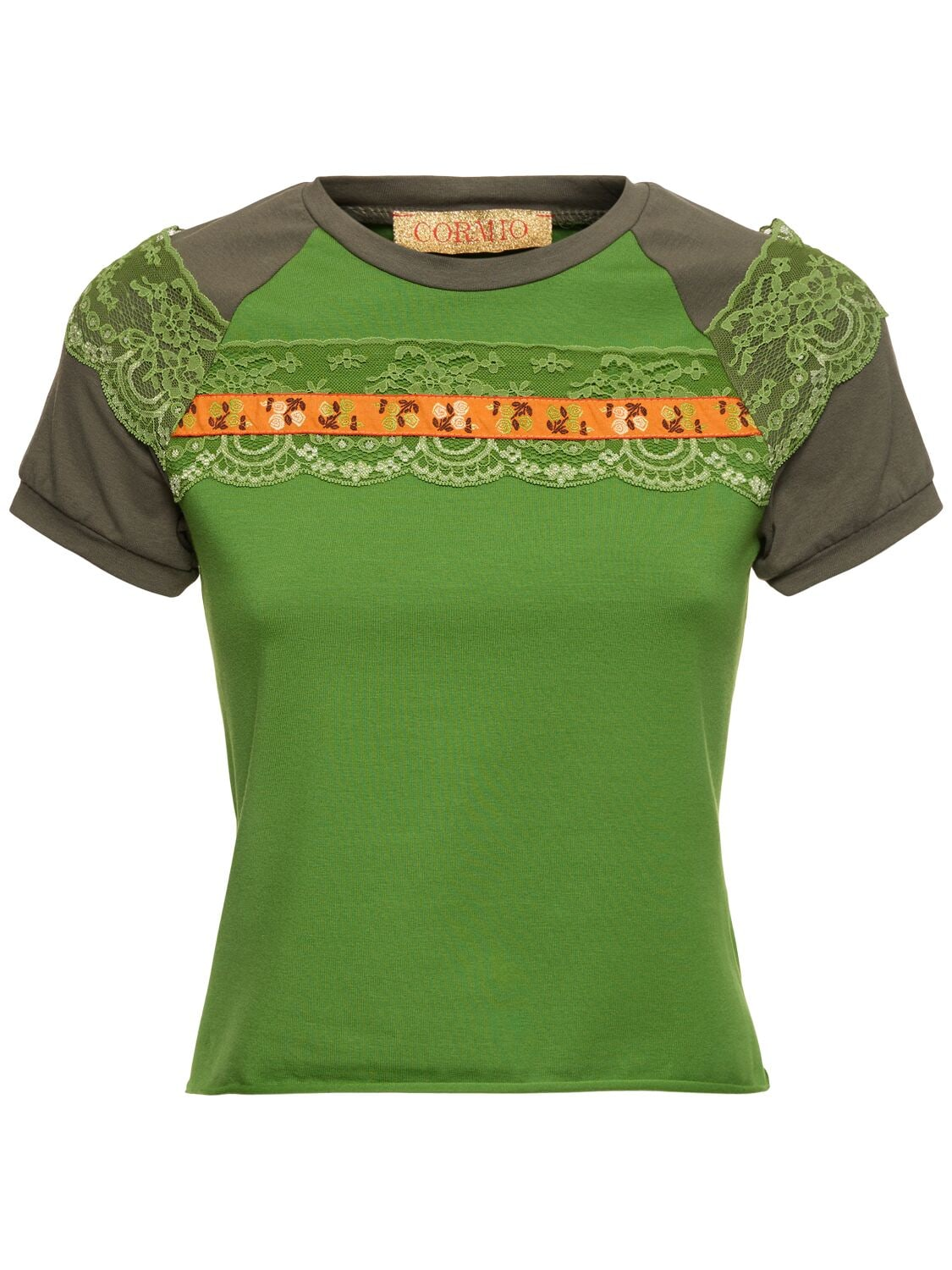 Jezabelle Cormio doesn't love the conventional rules. Her life is a constant search for the unknown. Cormio is her brand, born in 2019, combining Tyrolean-Austrian mountain aesthetics and the folklore of the Italian urban bourgeoisie. The Boah 2.0 cotton jersey raglan t-shirt features lace detail at front and back.