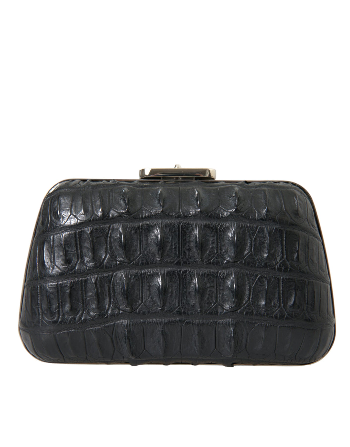 Experience luxury at your fingertips with this sophisticated evening clutch, crafted from the finest crocodile skin and lamb leather. The sleek black hue, complemented by striking silver metal detailing, exudes elegance. Perfect for any prestigious event, this Balenciaga clutch bag promises to be a show-stopper. Versatile in design, it can be worn as a shoulder bag or held as a clutch, offering impeccable style for any party or evening occasion. Proudly made in Italy.