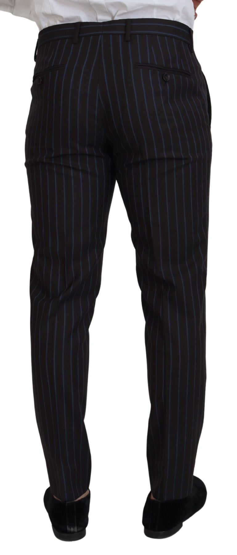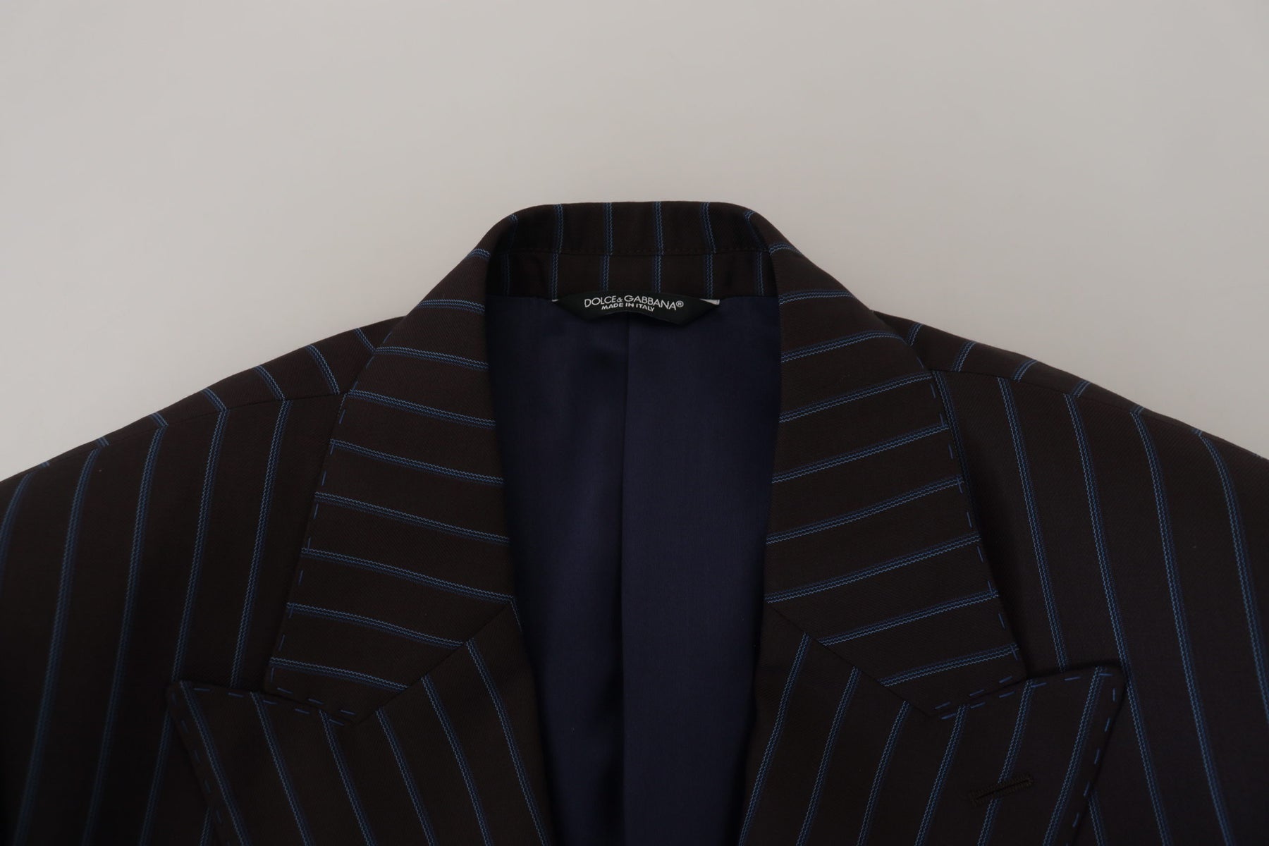 Gorgeous brand new with tags 100% Authentic Dolce & Gabbana 2 piece suit. Striped blazer with peak lapels and two-button closure. The trousers feature a concealed zip and button closure, front slanted pockets, one watch pocket and two back welt pockets with buttons. Pressed pleats and unfinished hems.