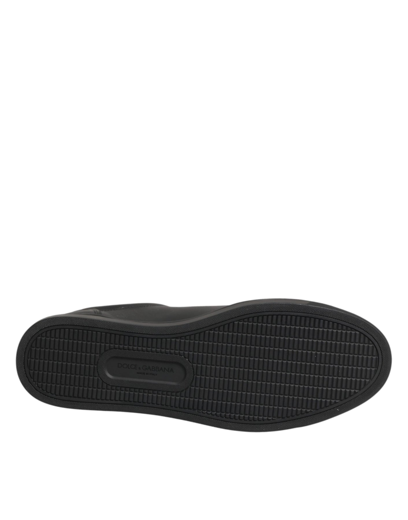 Dolce & Gabbana Black Leather Heart Embellished Sneakers Shoes