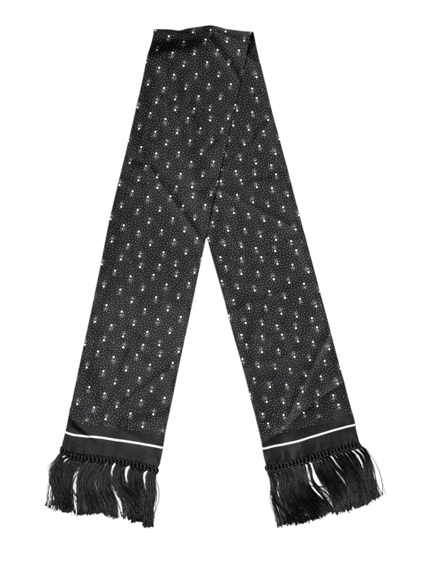 Dolce & Gabbana Black Silk Dotted Men Neck Wrap Shawl Scarf