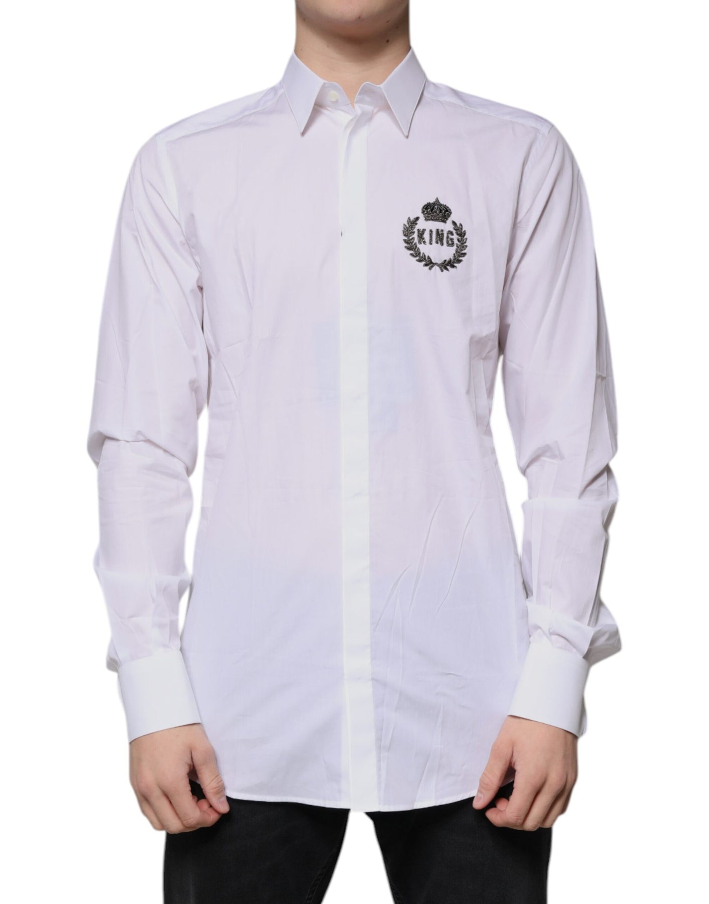 Absolutely stunning, 100% Authentic brand new with tags Dolce & Gabbana GOLD cotton shirt with logo embroidery. The model has a classic collared neck, long sleeves and a button down closure.